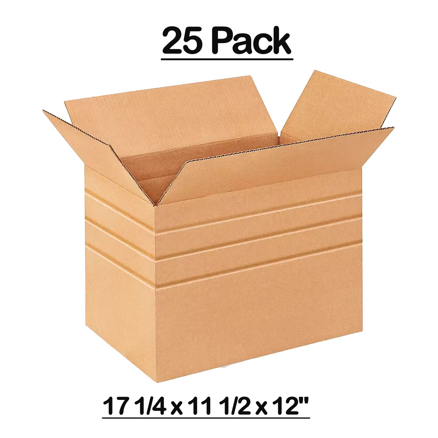 25 Pack Multi Depth Corrugated Packing Boxes for Shipping Mailing and Storage 17 1⁄4 x 11 1⁄2 x 12 inch