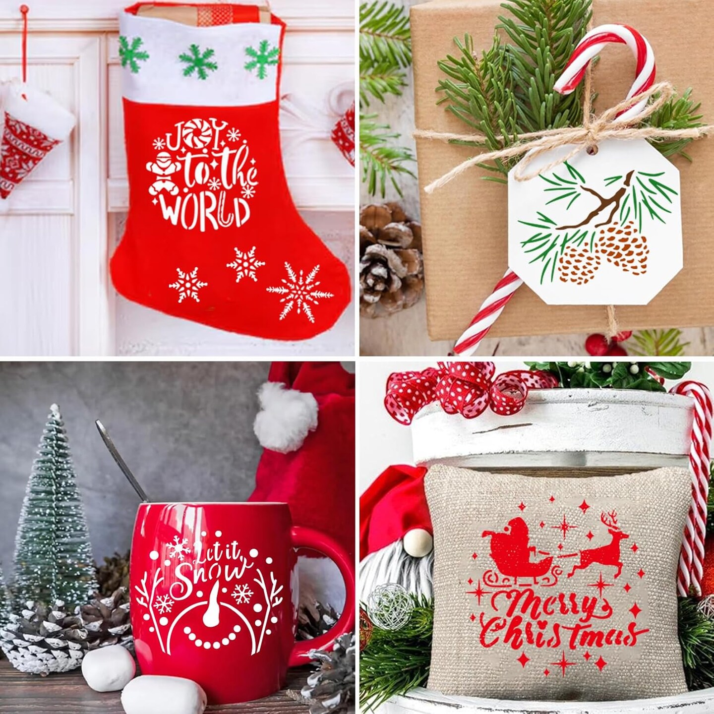 25 Pcs Christmas Stencils for Crafts Reusable (25 Christmas 4in) 4"L x 4"W