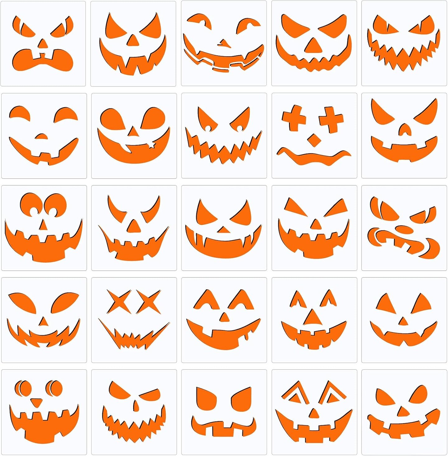 25 Pcs Halloween Pumpkins Face Stencils, Decorative Painting Stencils