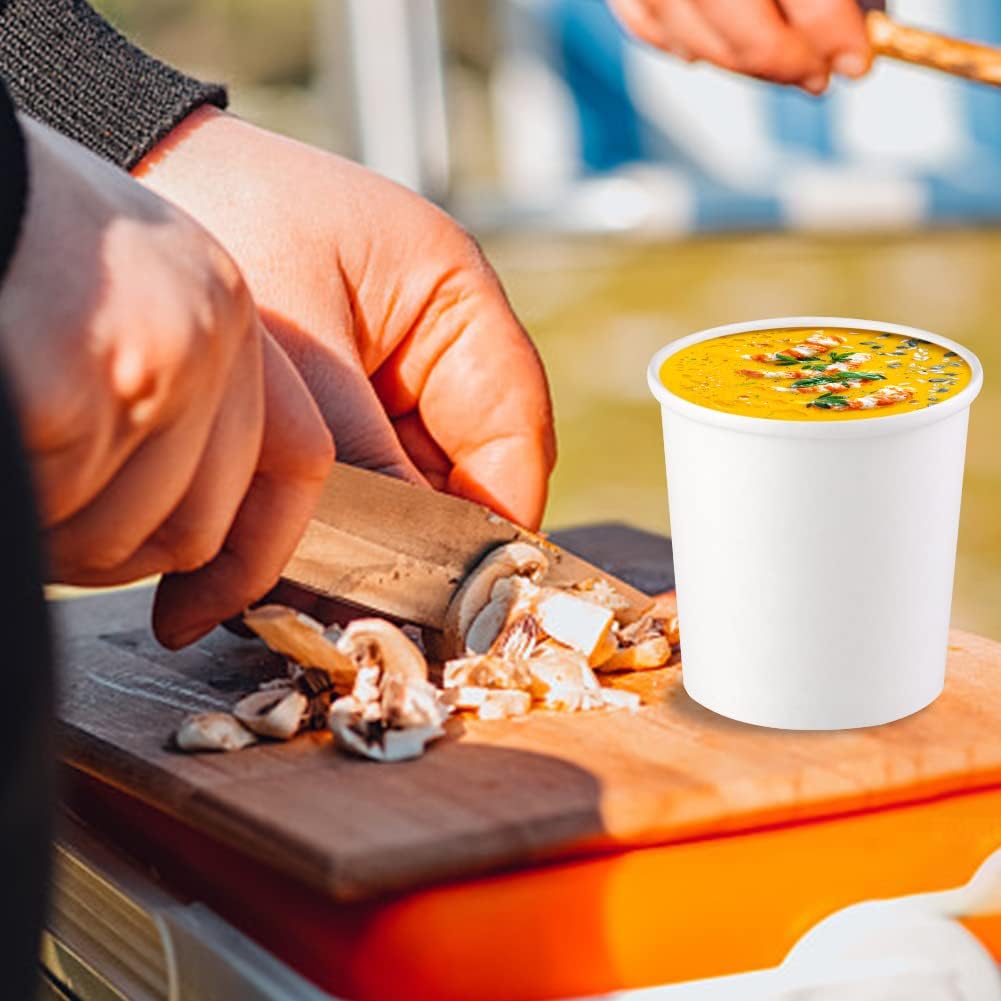 25 Pcs Paper Soup Cups with Lids, Disposable Soup Cups, Ice Cream Containers, White Disposable Soup Containers White for Hot or Cold Soup