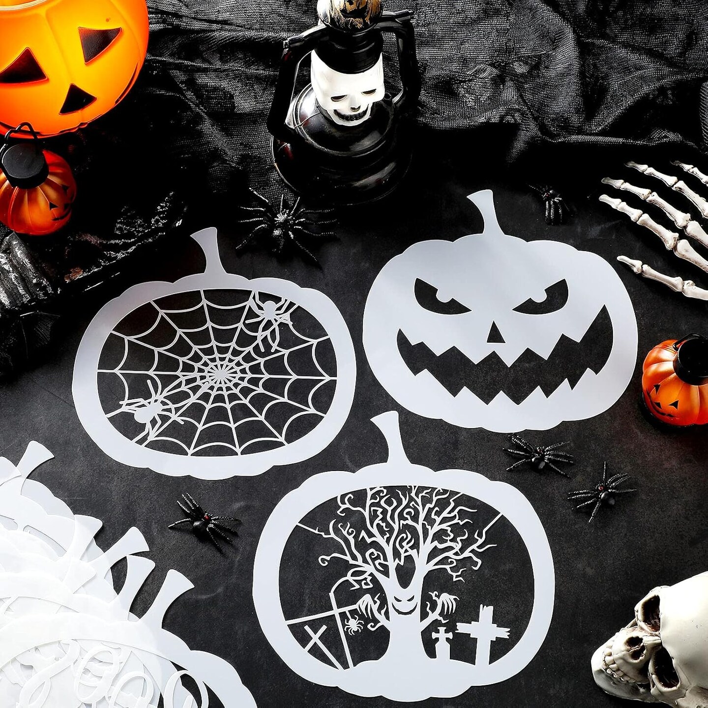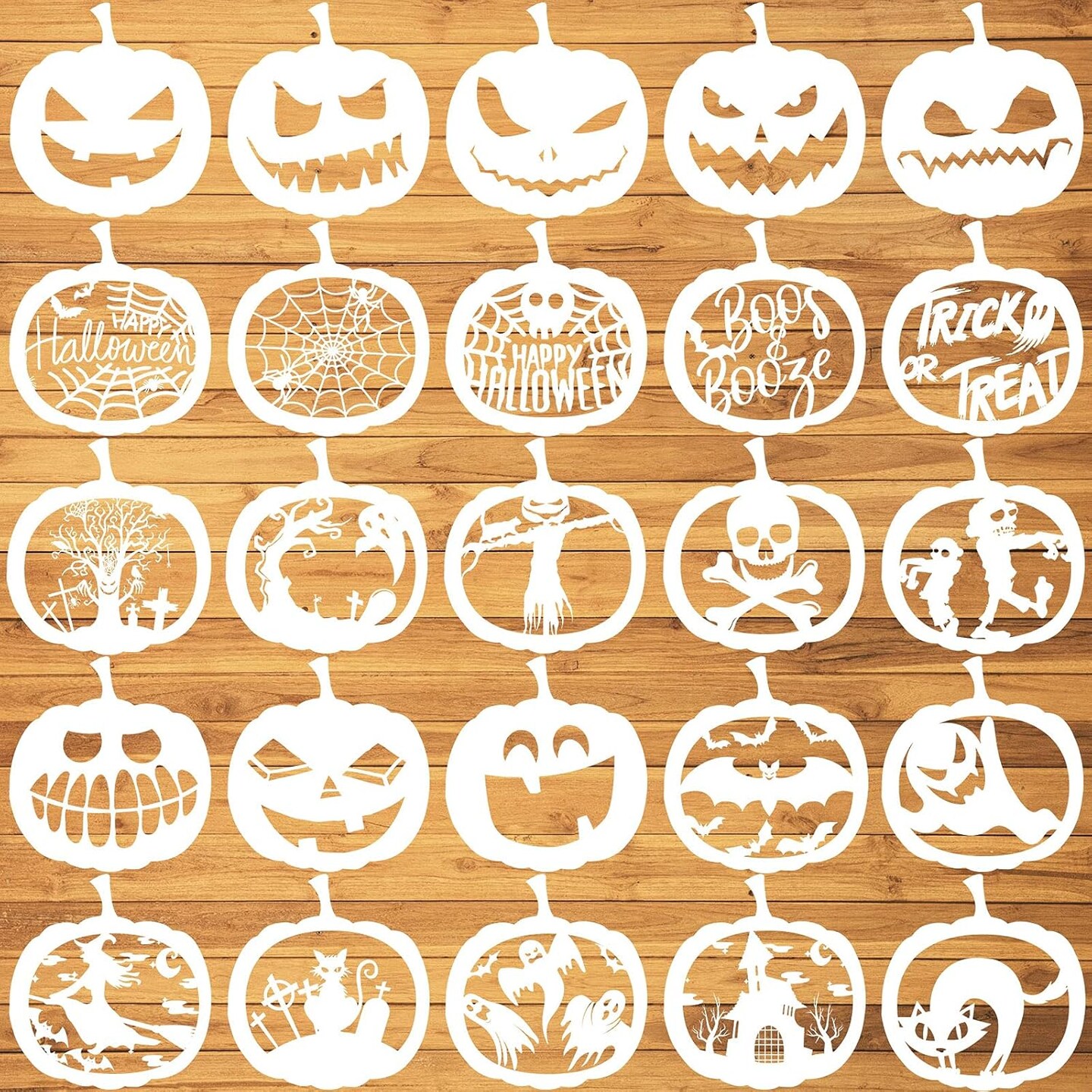 25 Pieces 7.9 Inch Halloween Pumpkin Stencils Reusable Pumpkin