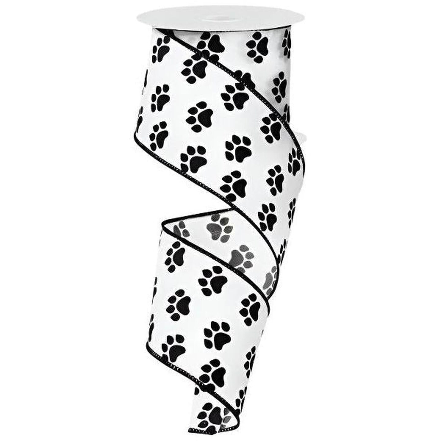 2.5" Satin Paw Print Ribbon: Black & White (10 Yards)