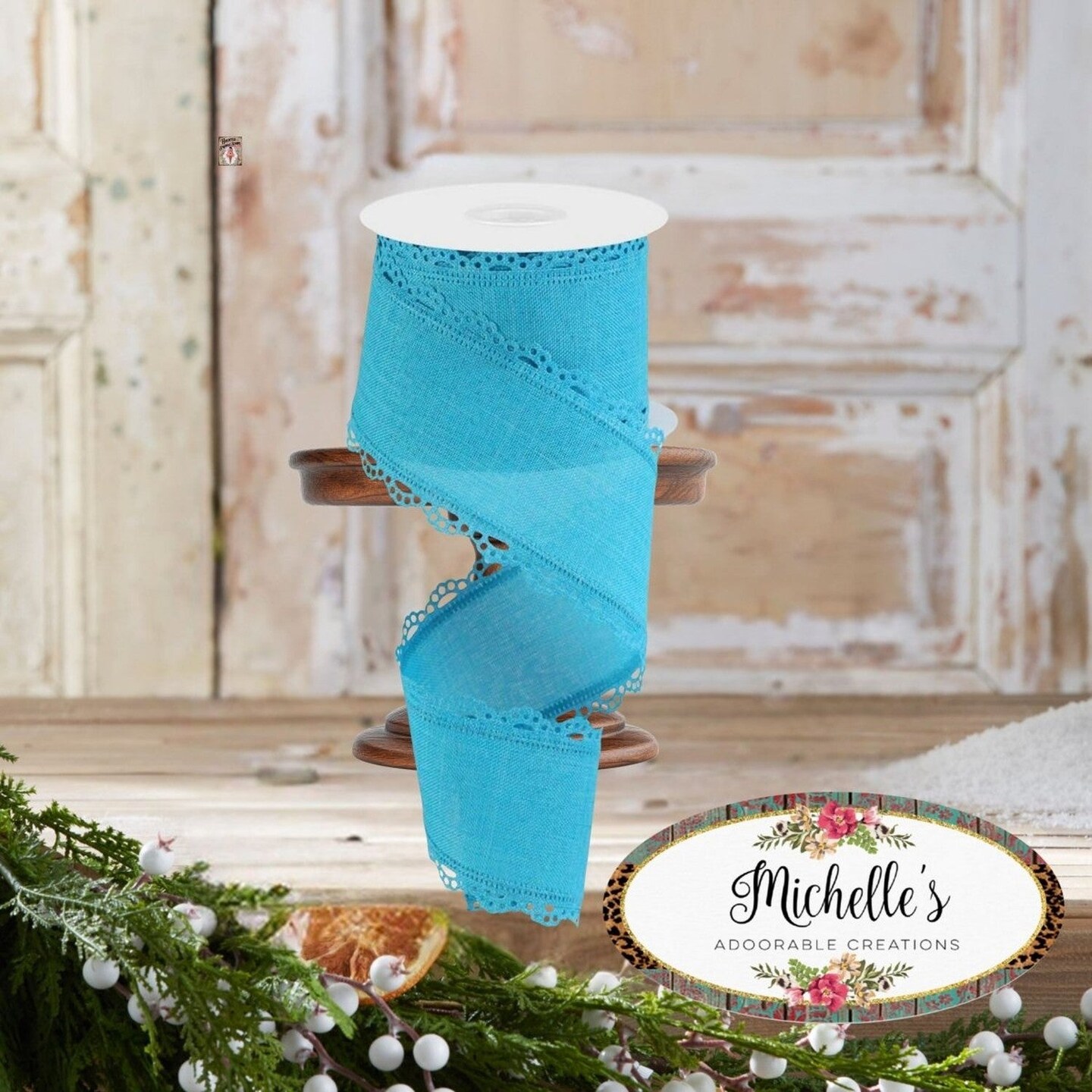 2.5" Scalloped Edge Ribbon: Turquoise (10 Yard)