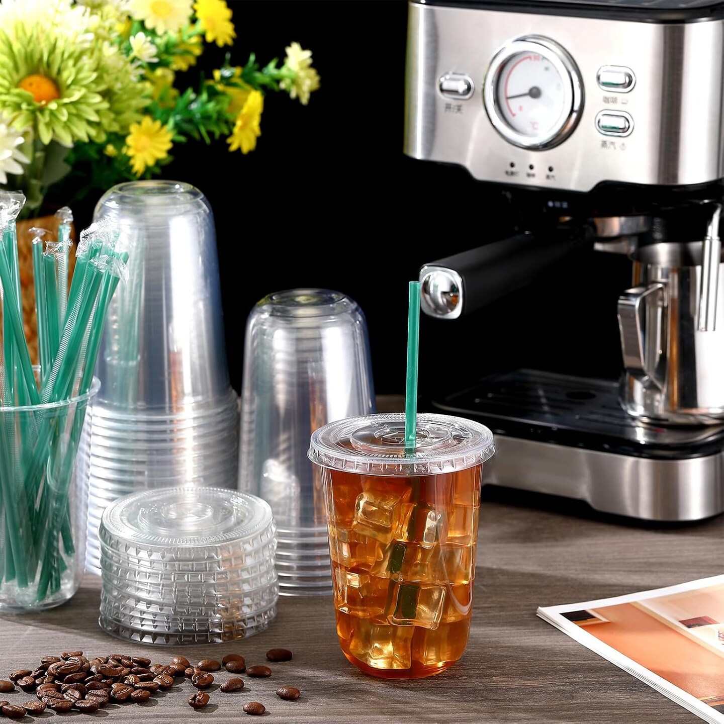 25 Set Plastic Cups with Lids and Straws, Disposable Plastic Iced Coffee Cup for Cold Beverage Juice Smoothie Crystal for Coffee Shops Party Catering(Clear,16 oz)
