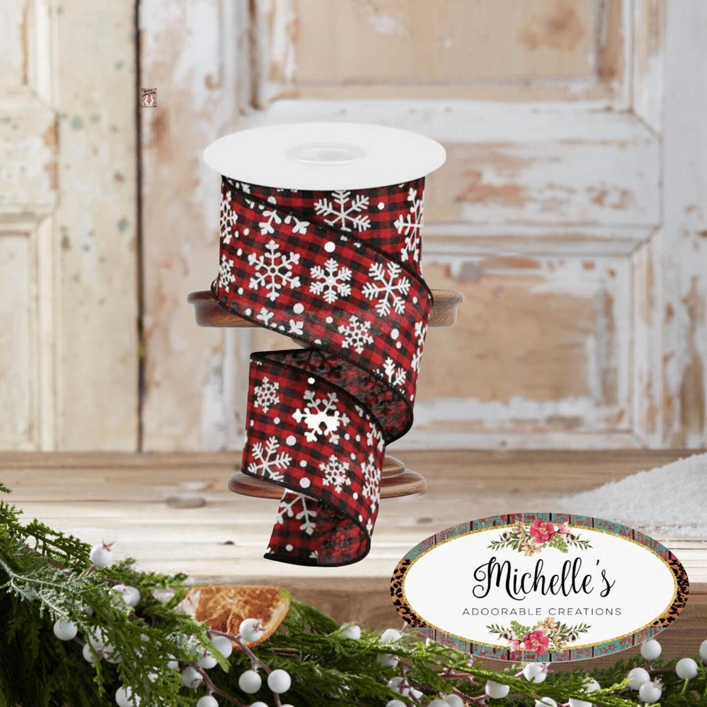 2.5" Snowflake Ribbon: Black & Red (10 Yards)