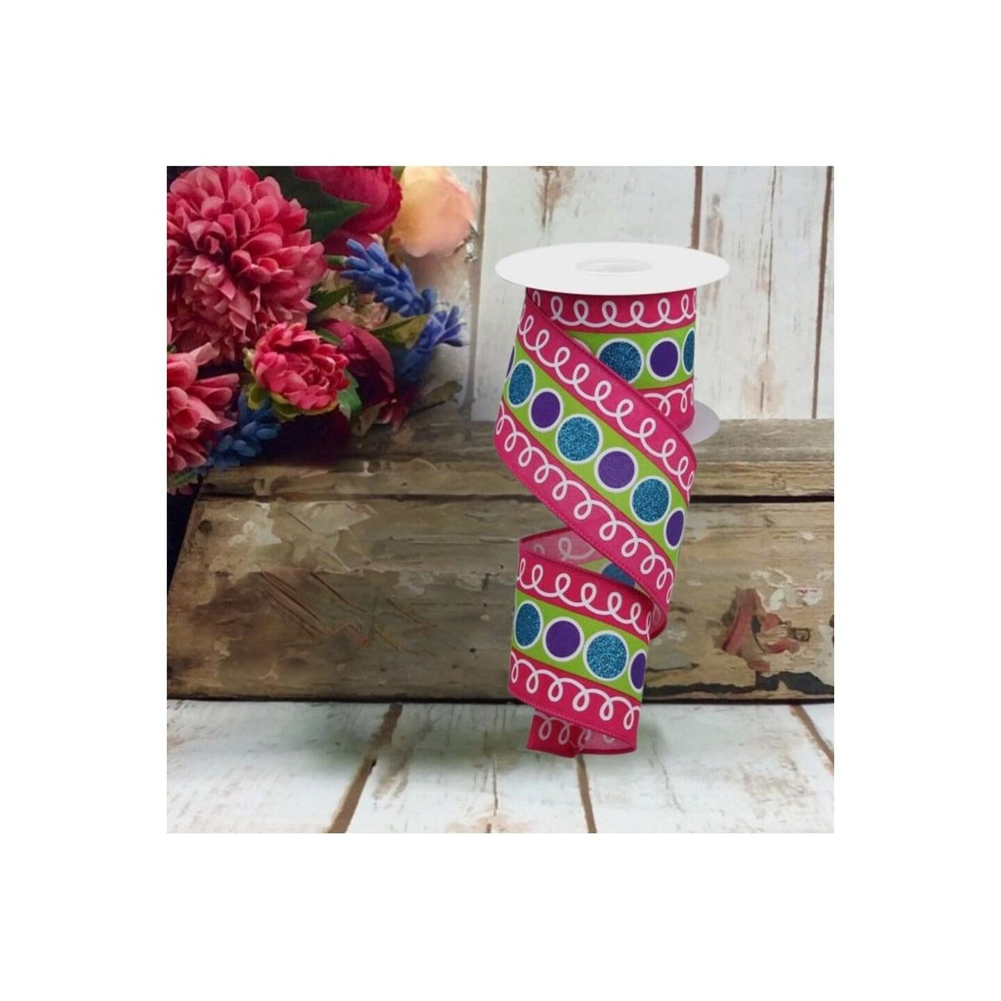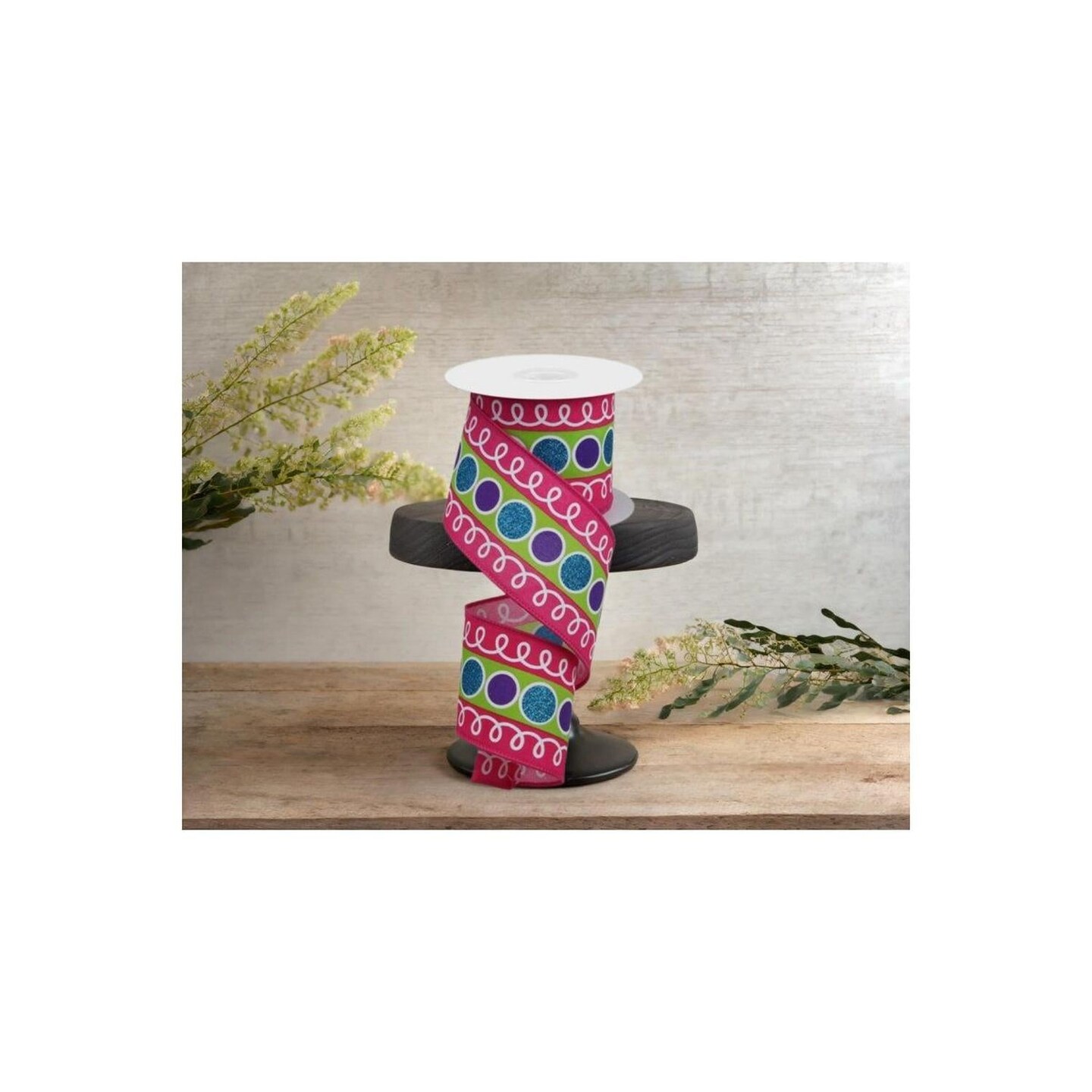2.5" Striped Glitter Circle Loops Ribbon: Pink (10 Yards)