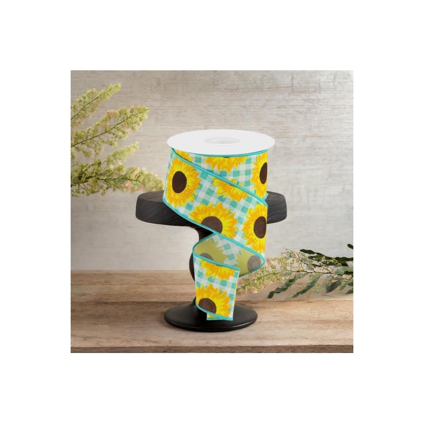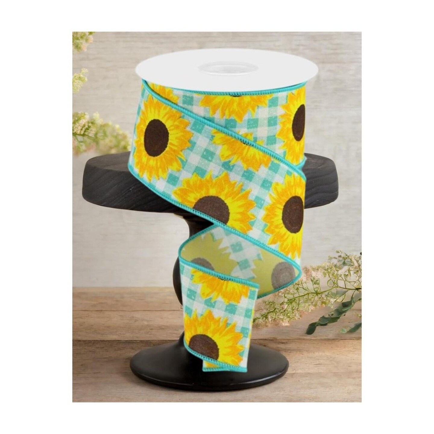 2.5" Sunflower on Royal Ribbon: Light Teal (10 Yards)