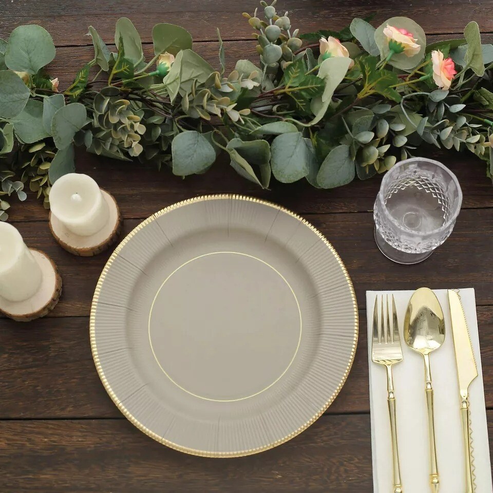 25 TAUPE 10" Metallic Round Paper Salad DINNER PLATES