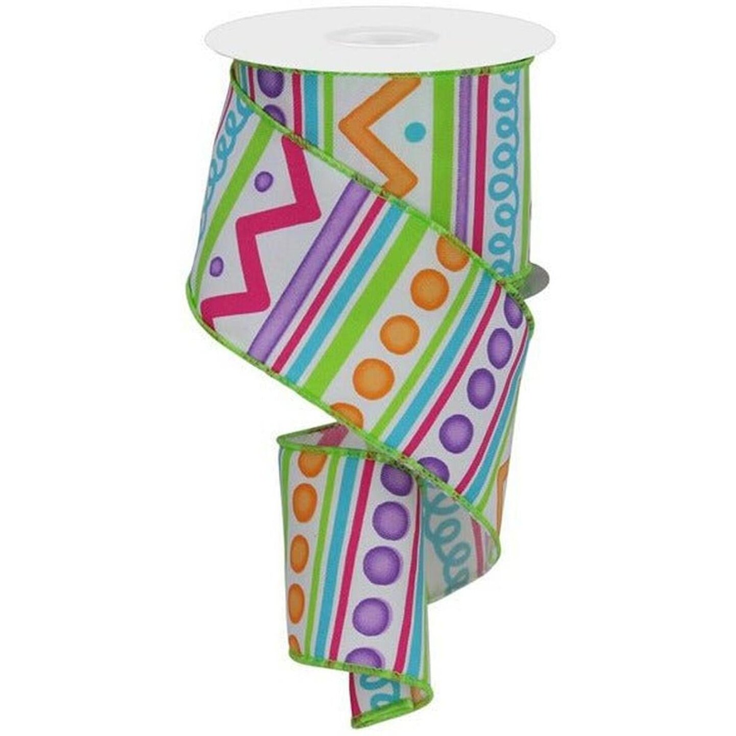 2.5" Tribal Stripes Ribbon: White (10 Yards)