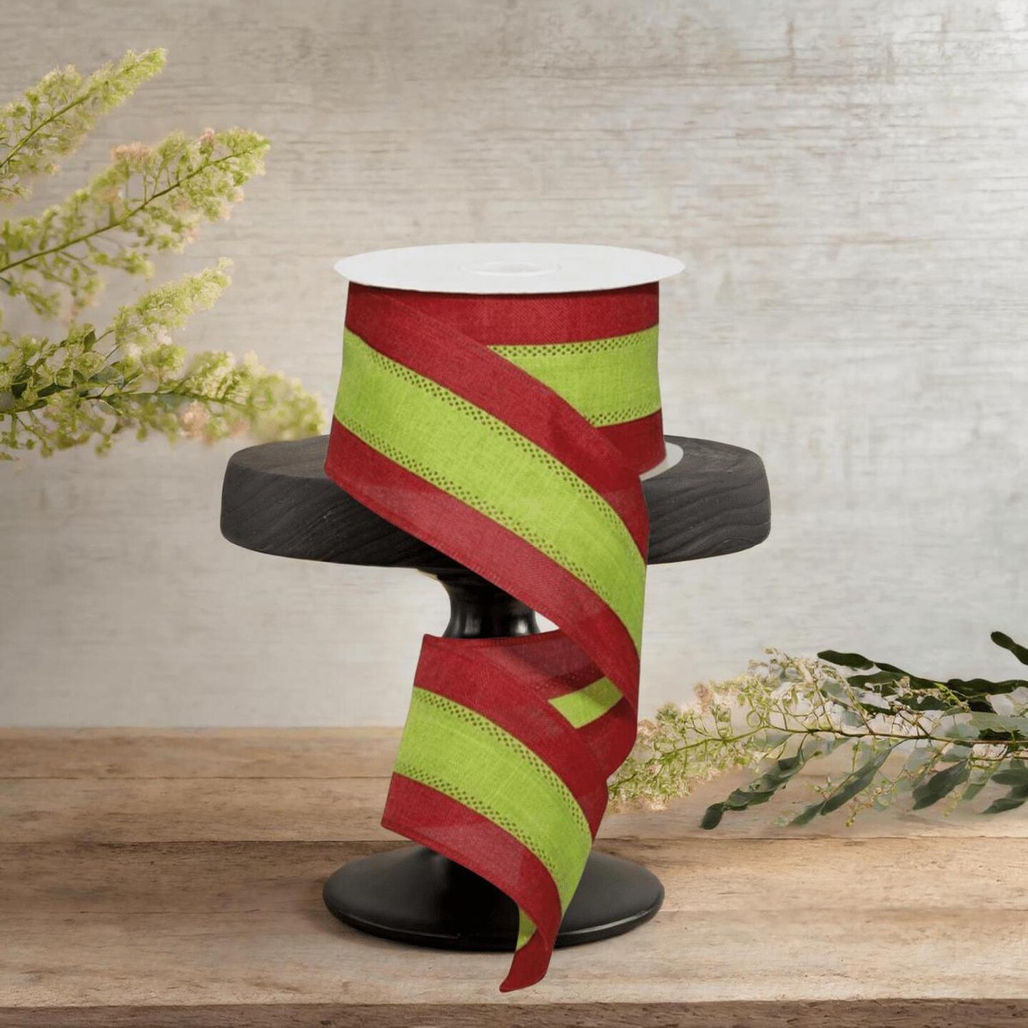 2.5" Tricolor Striped Ribbon: Red/Lime Green (10 Yards)