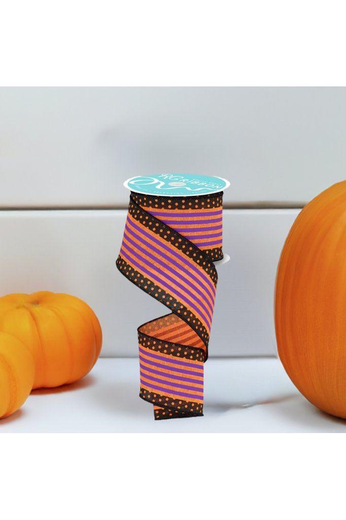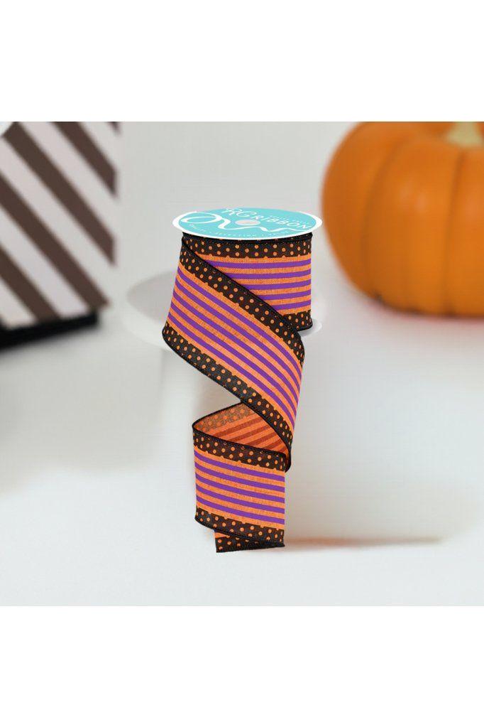 2.5" Vertical Stripe Polka Dot Edge Ribbon: Orange, Purple, Black