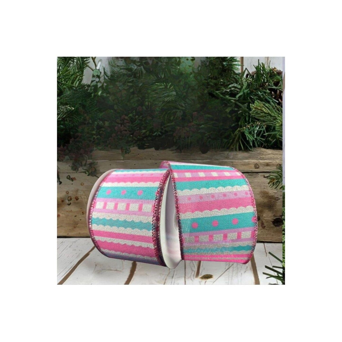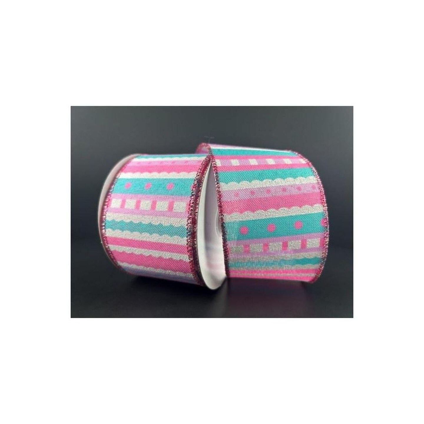2.5" Whimsy Stripe Ribbon: Pink, Aqua, Lavender