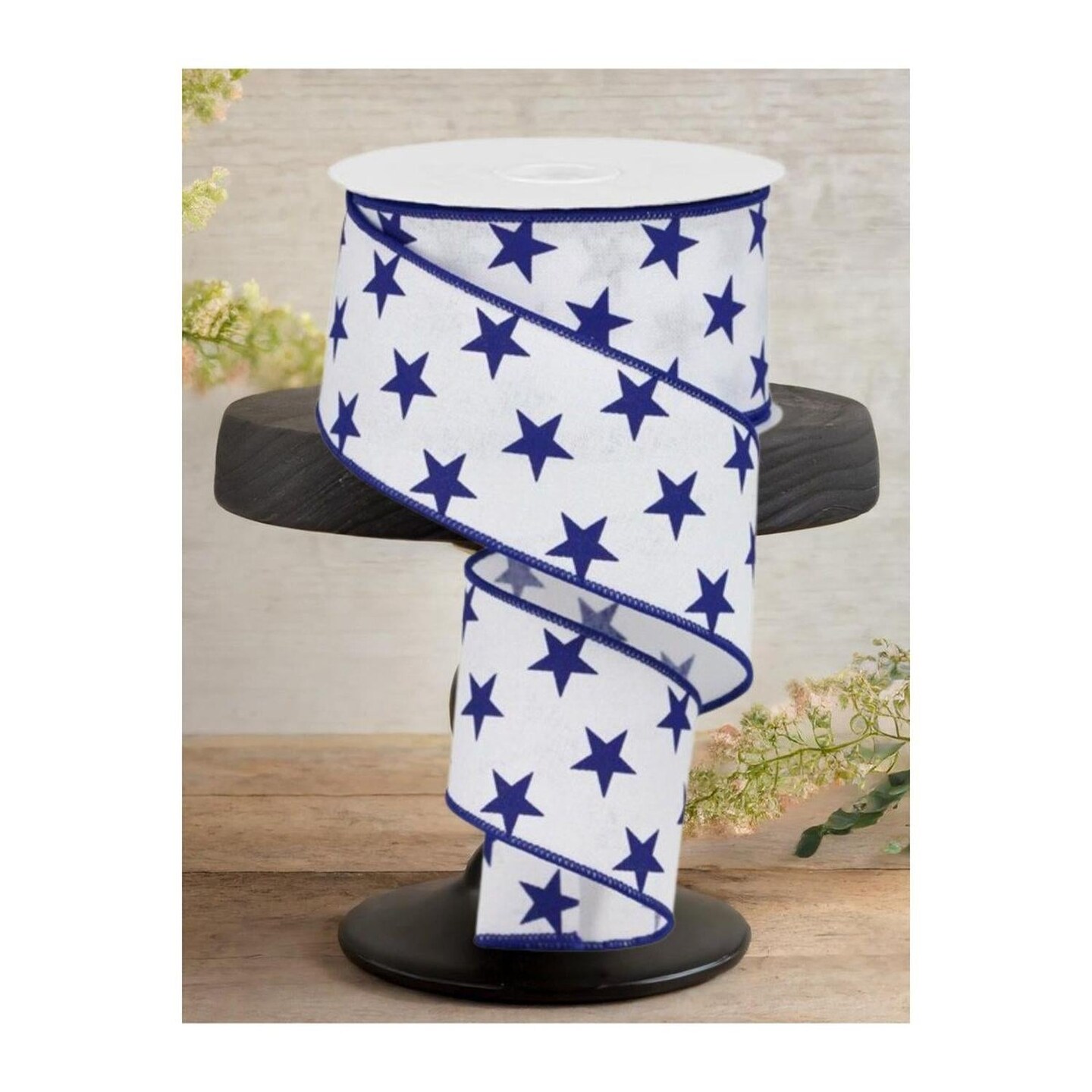 2.5" White Royal Canvas Ribbon: Blue Stars (10 Yards)