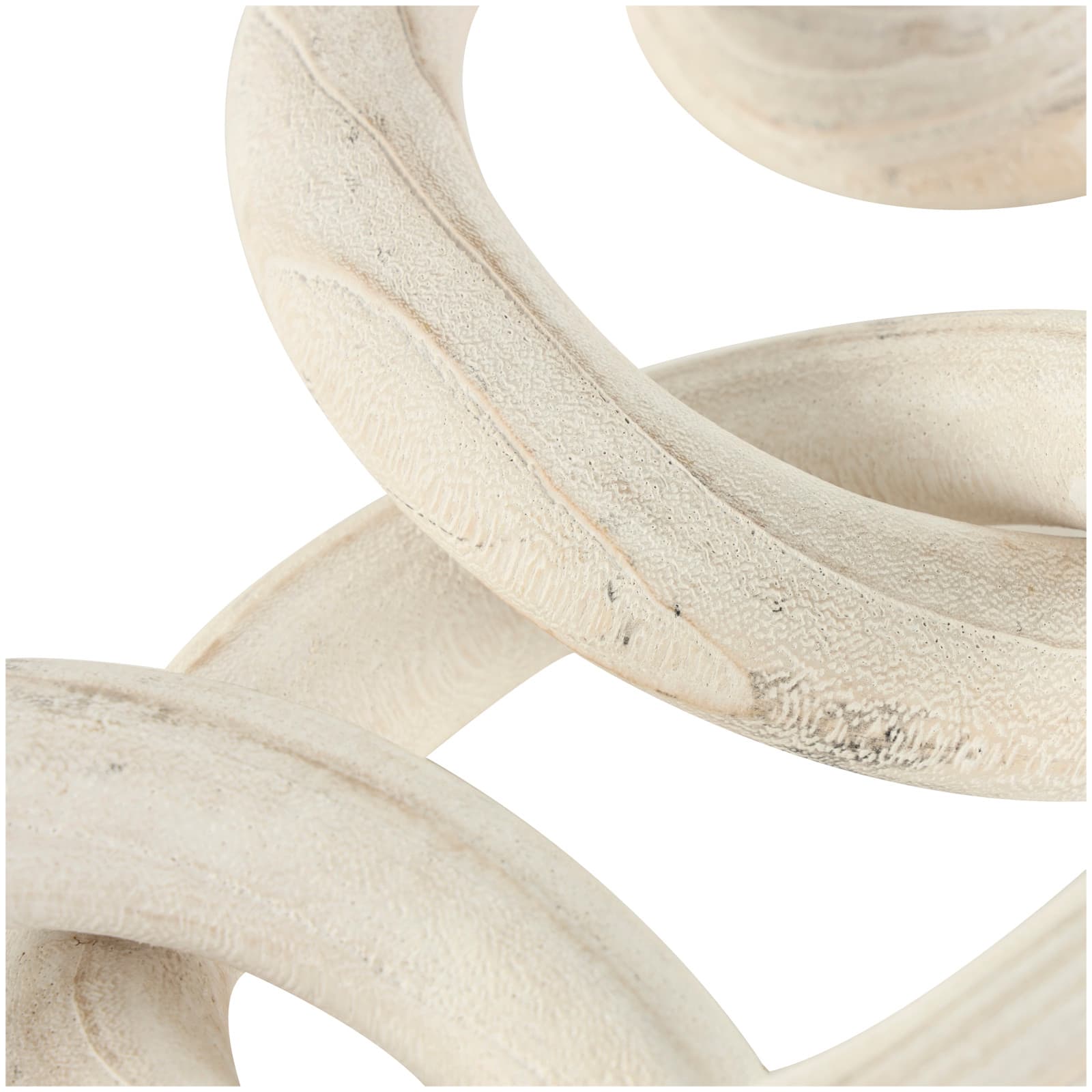 25" White Wood Chain 5 Link Sculpture with Natural Wood Grain