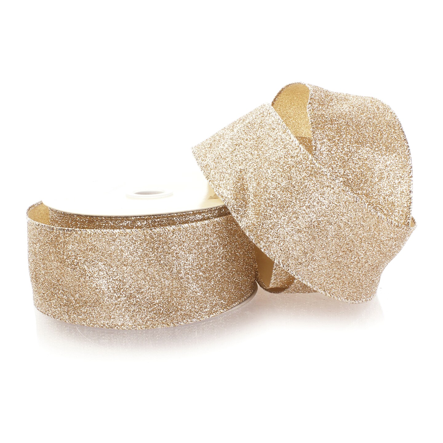 2.5" Wired Glitter Ribbon Light Gold - 10 Yards