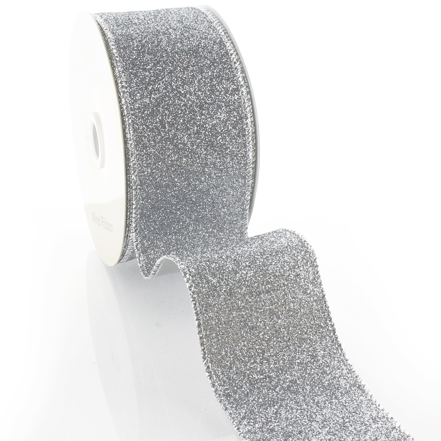 2.5" Wired Glitter Ribbon Silver - 10 Yards