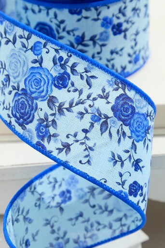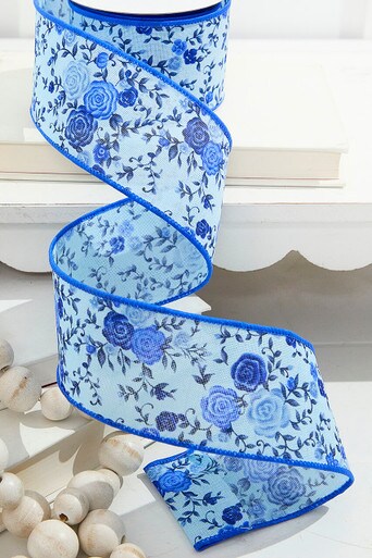 2.5” x 10 Yard Blue Spring Floral Ribbon
