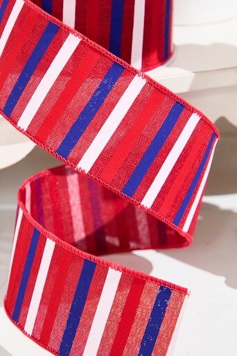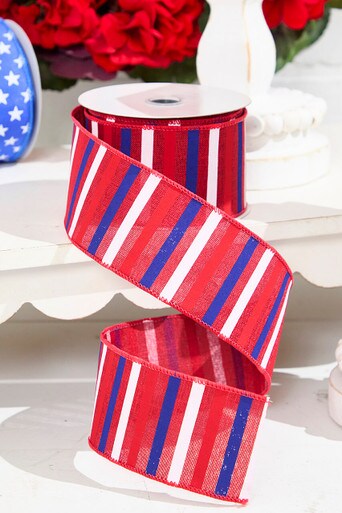 2.5" x 10 Yard Horizontal Stripe Red, White & Blue Ribbon