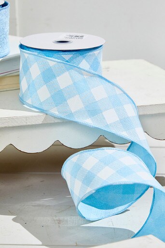 2.5" x 10 Yards Diagonal Blue Check Ribbon