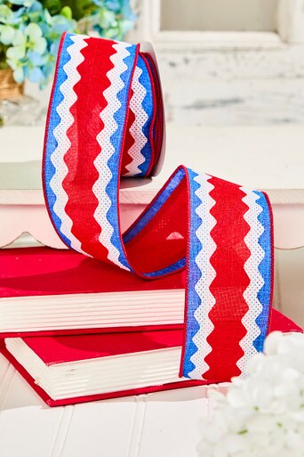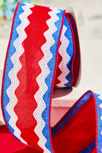 2.5" x 10 Yards Red, White & Blue Patterned Ribbon