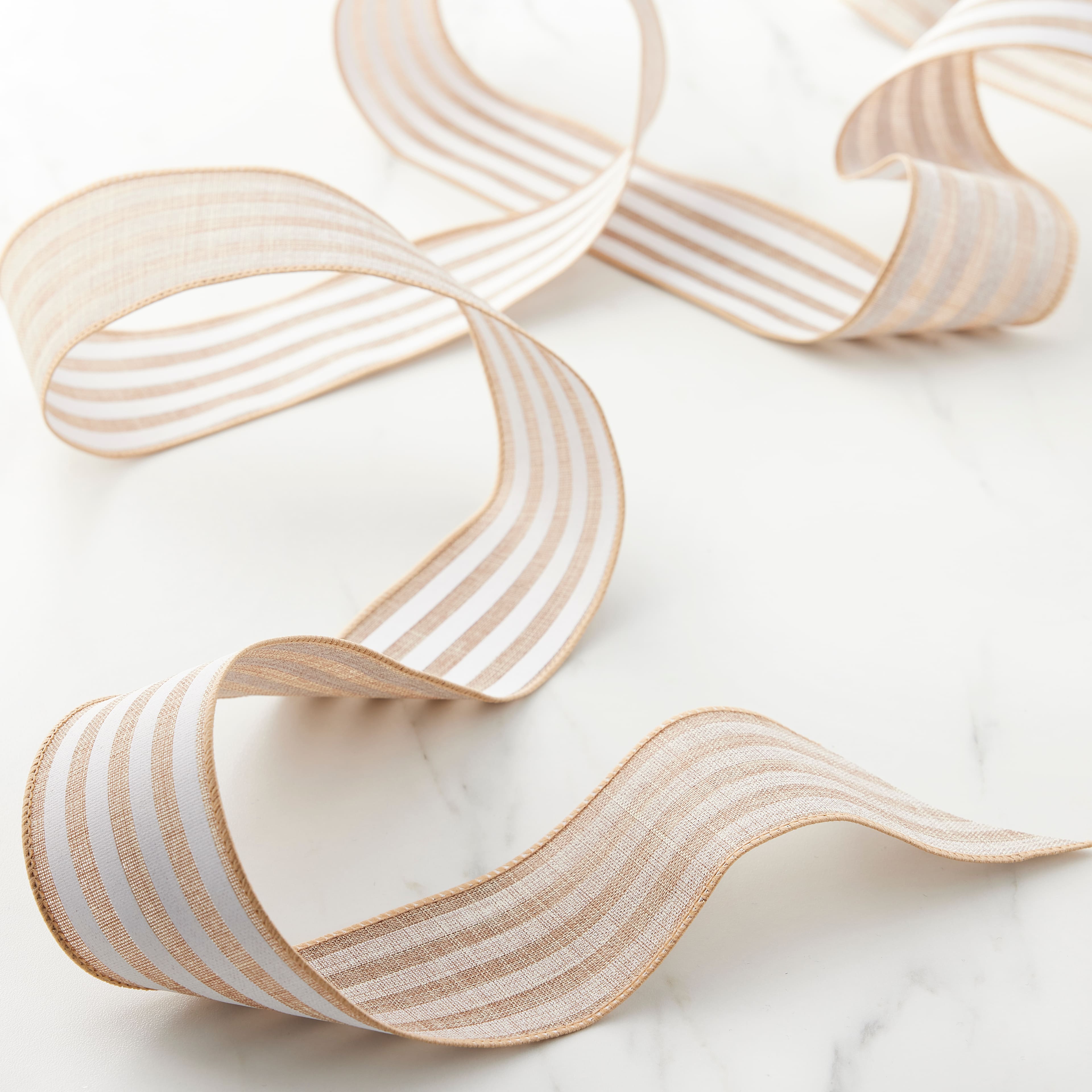 2.5" x 25ft. Faux Linen Wired Stripe Ribbon by Celebrate It™