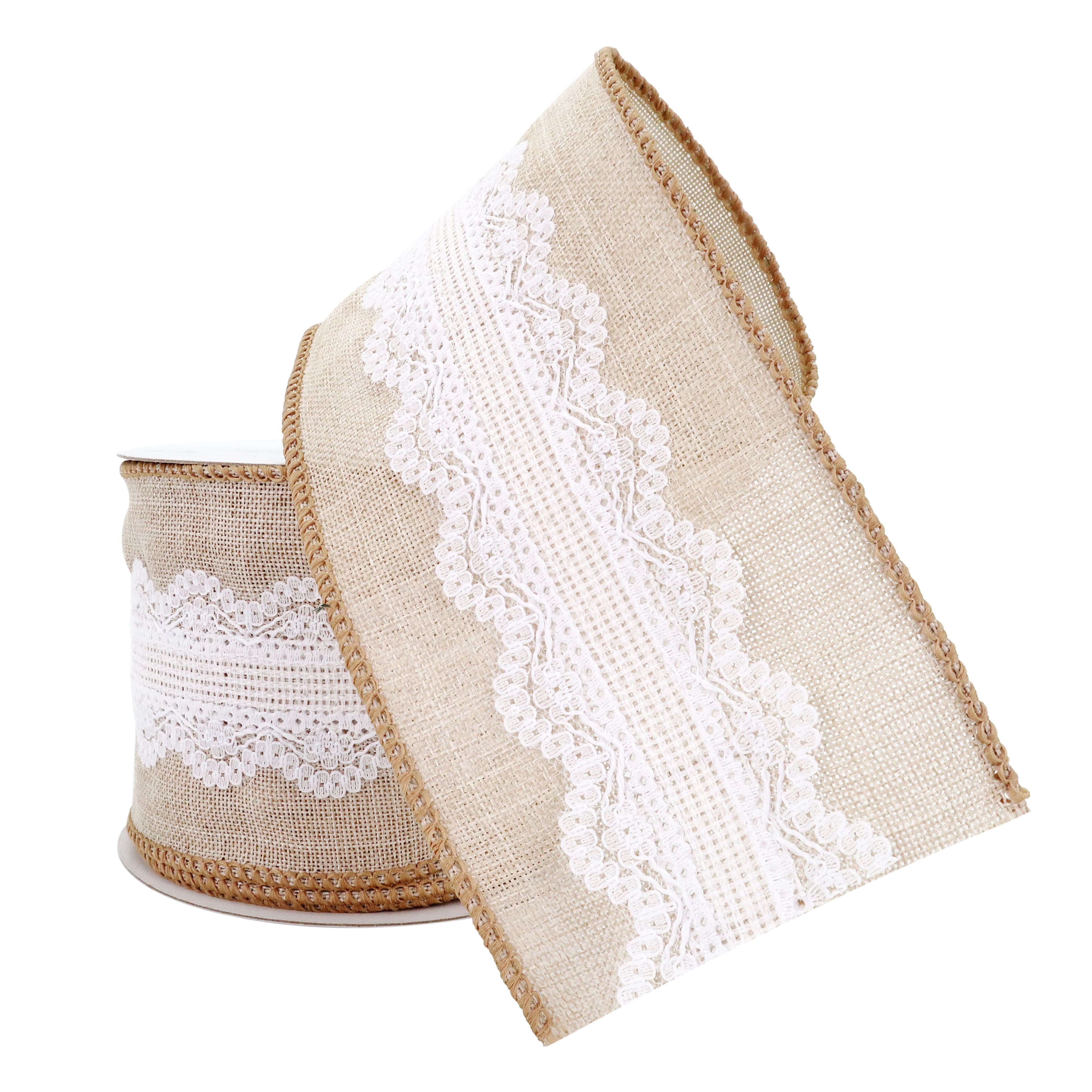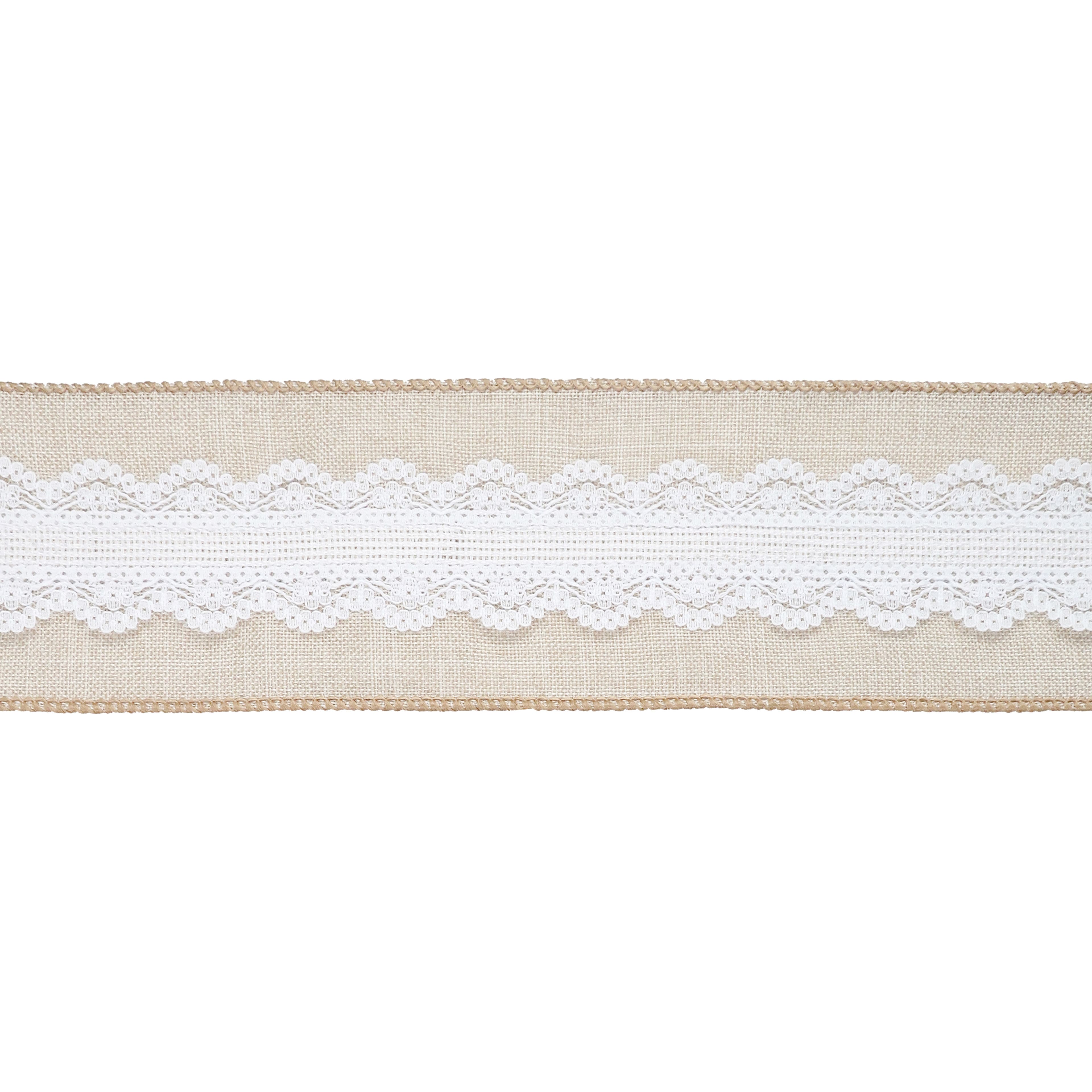 2.5" x 2yd. Faux Linen & Lace Wired Ribbon by Celebrate It™