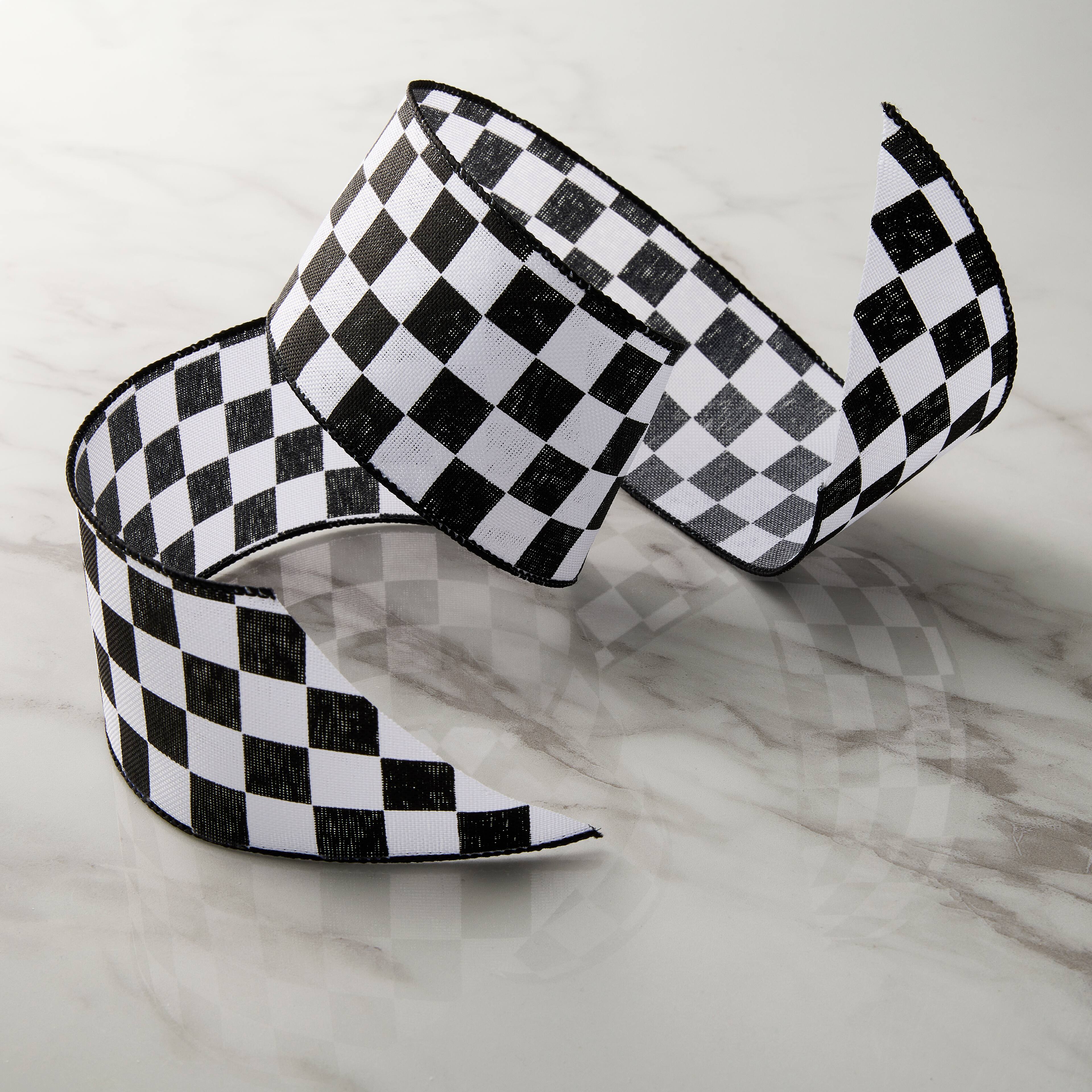 2.5" x 3yd. Black & White Checkered Wired Edge Ribbon by Celebrate It™
