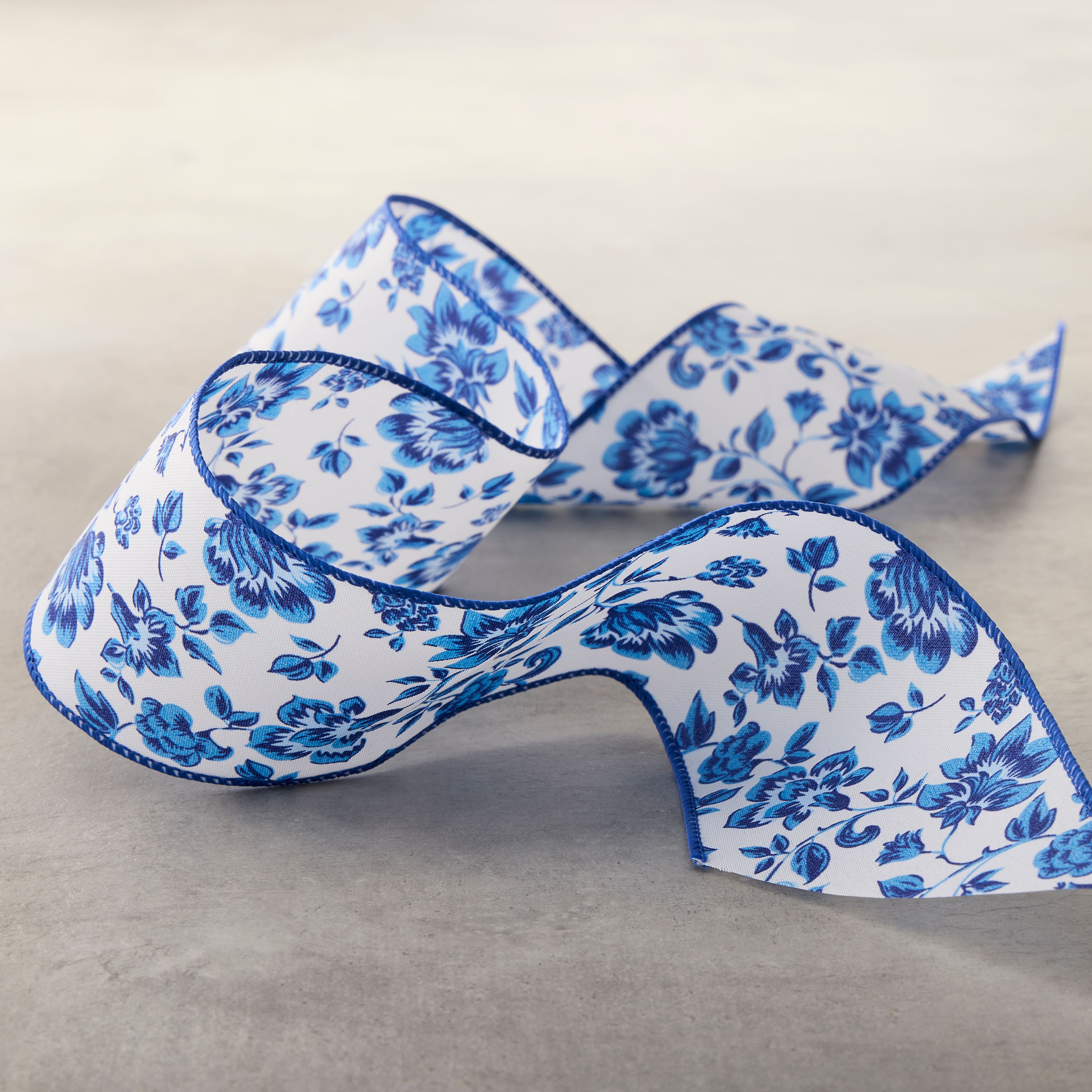 2.5" x 3yd. Blue Chinoiserie Floral Wired Edge Ribbon by Celebrate It™