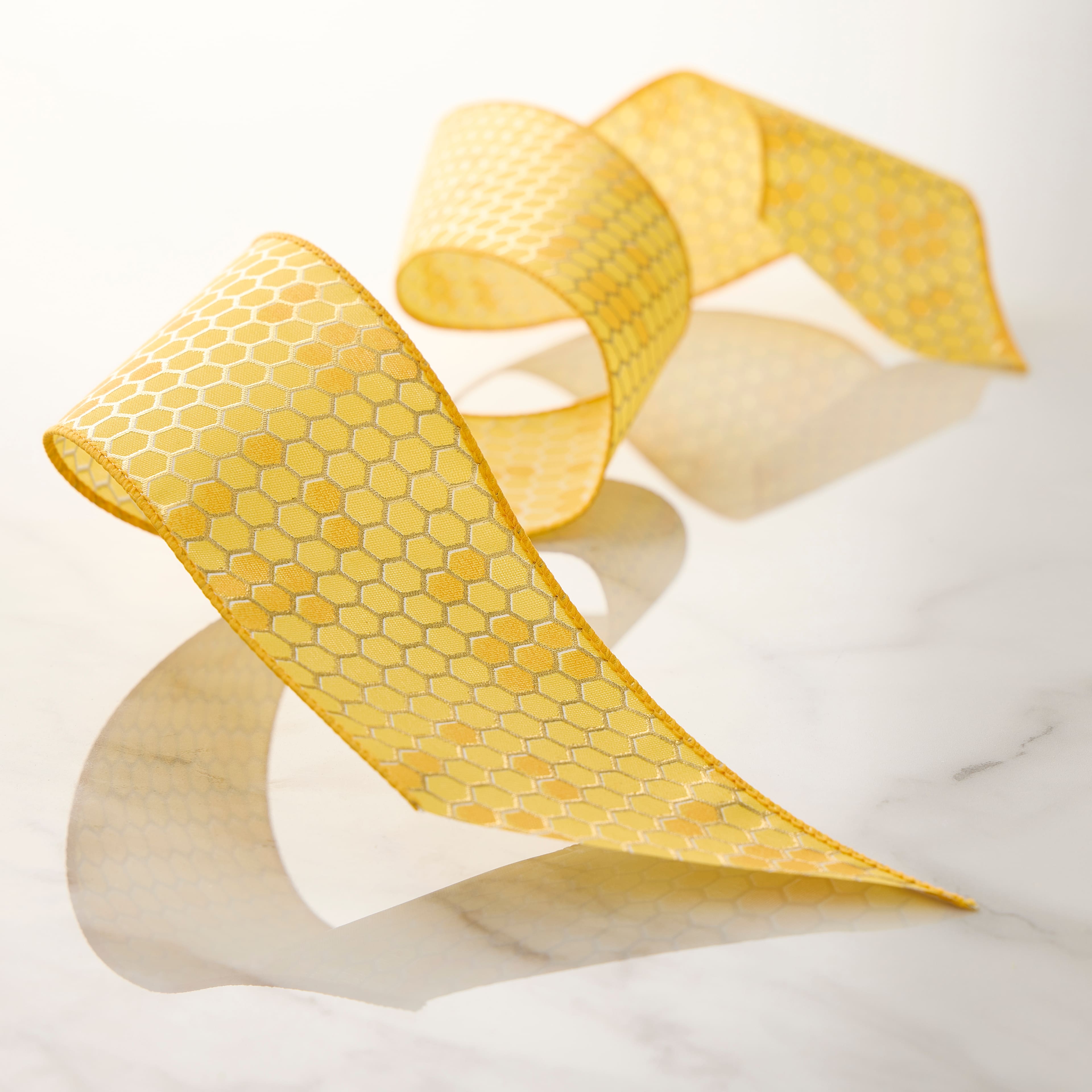 2.5" x 3yd. Wired Yellow Honeycomb Ribbon by Celebrate It®