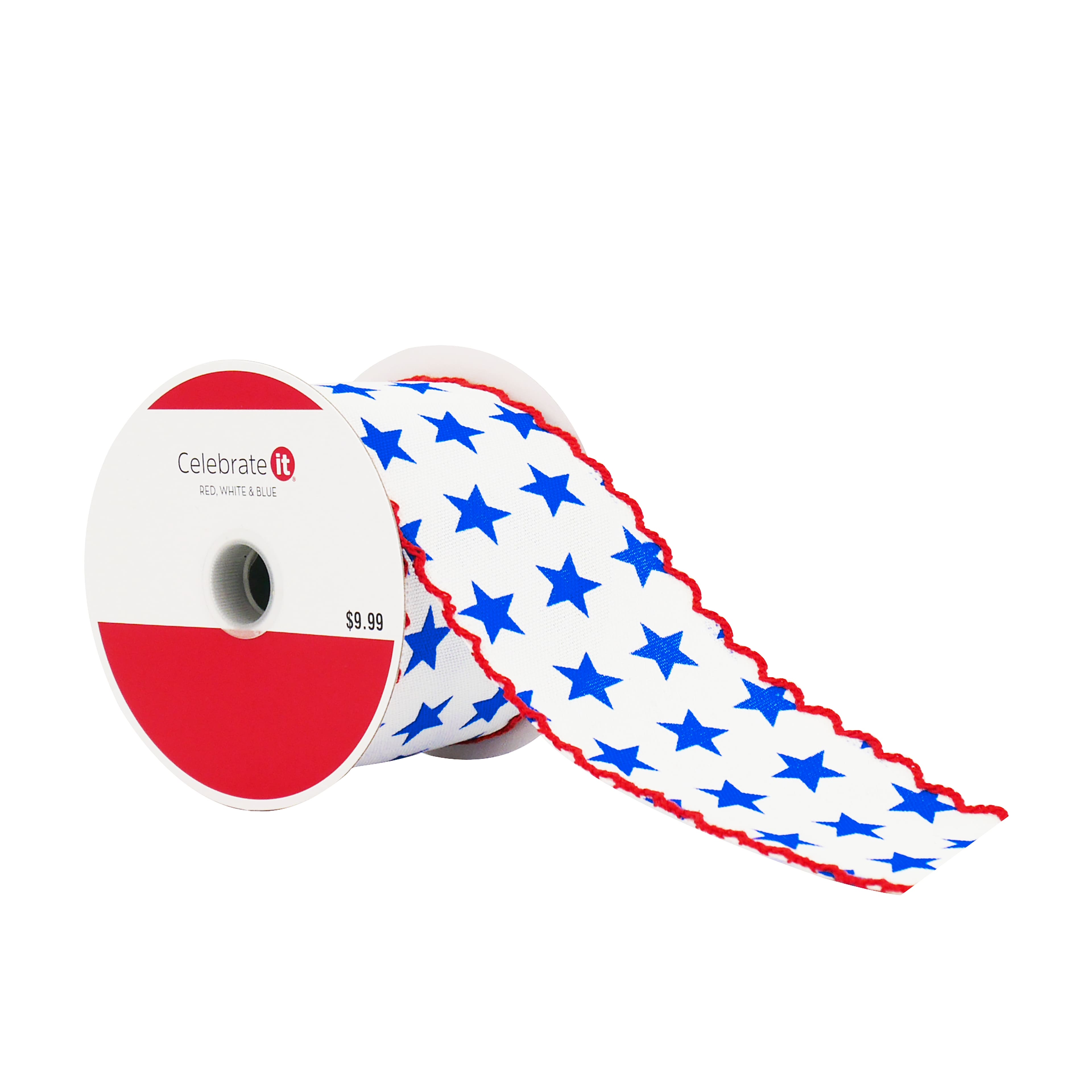 2.5" x 5yd. Blue & White Stars with Red Edge Wired Cross Linen Ribbon by Celebrate It®