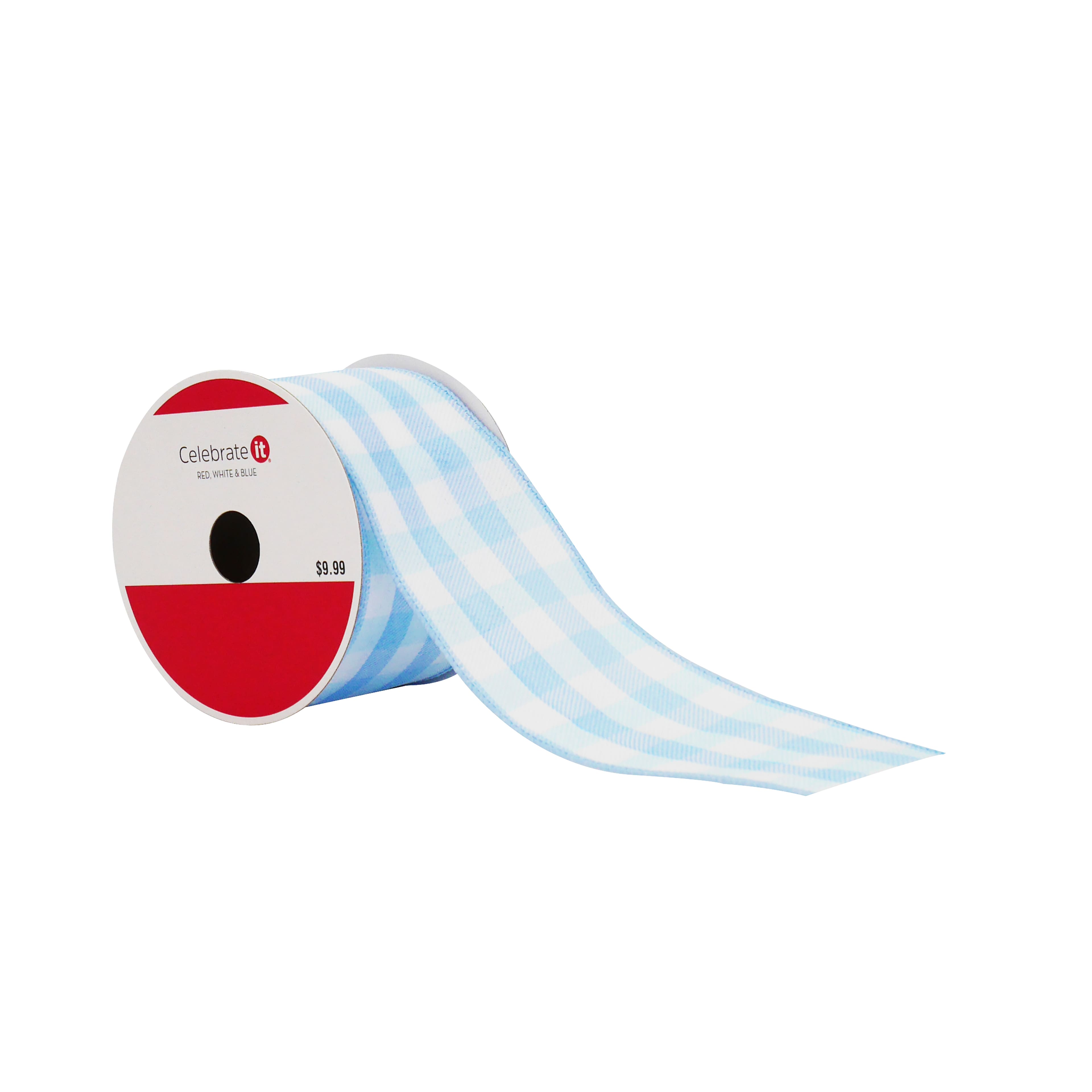 2.5" x 6.6yd. Blue & White Check Wired Ribbon by Celebrate It®