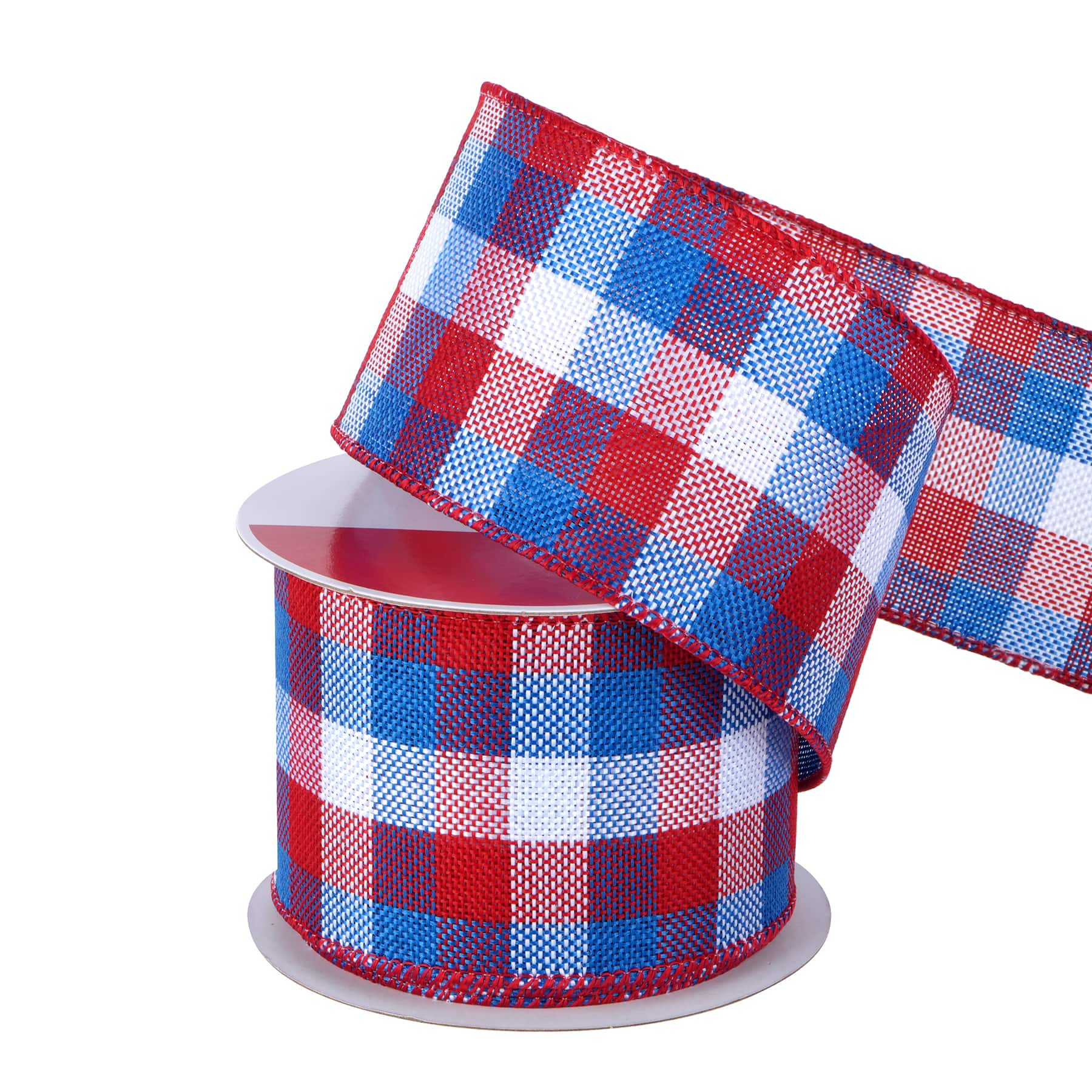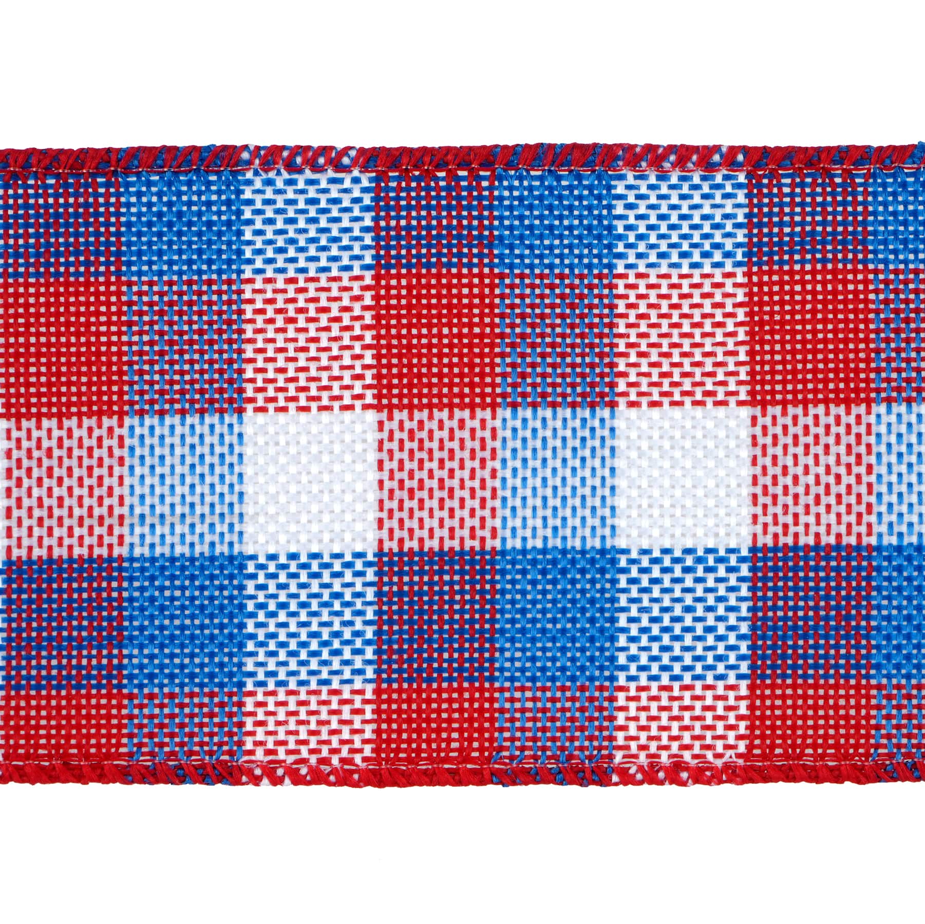 2.5" x 6.6yd. Red, White & Blue Plaid Wired Ribbon by Celebrate It®