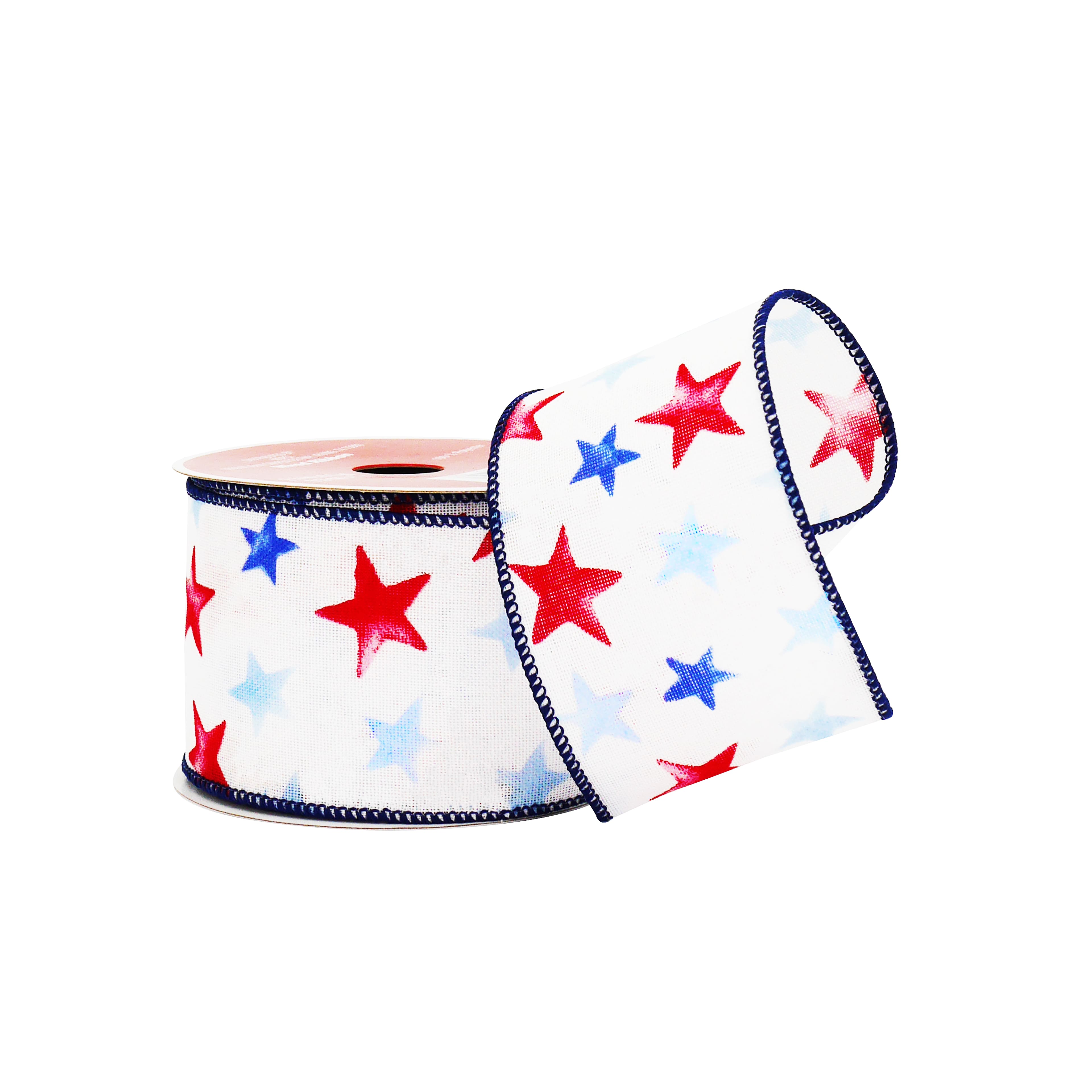 2.5" x 6.6yd. Red, White & Blue Stars Wired Cross Linen Ribbon by Celebrate It®
