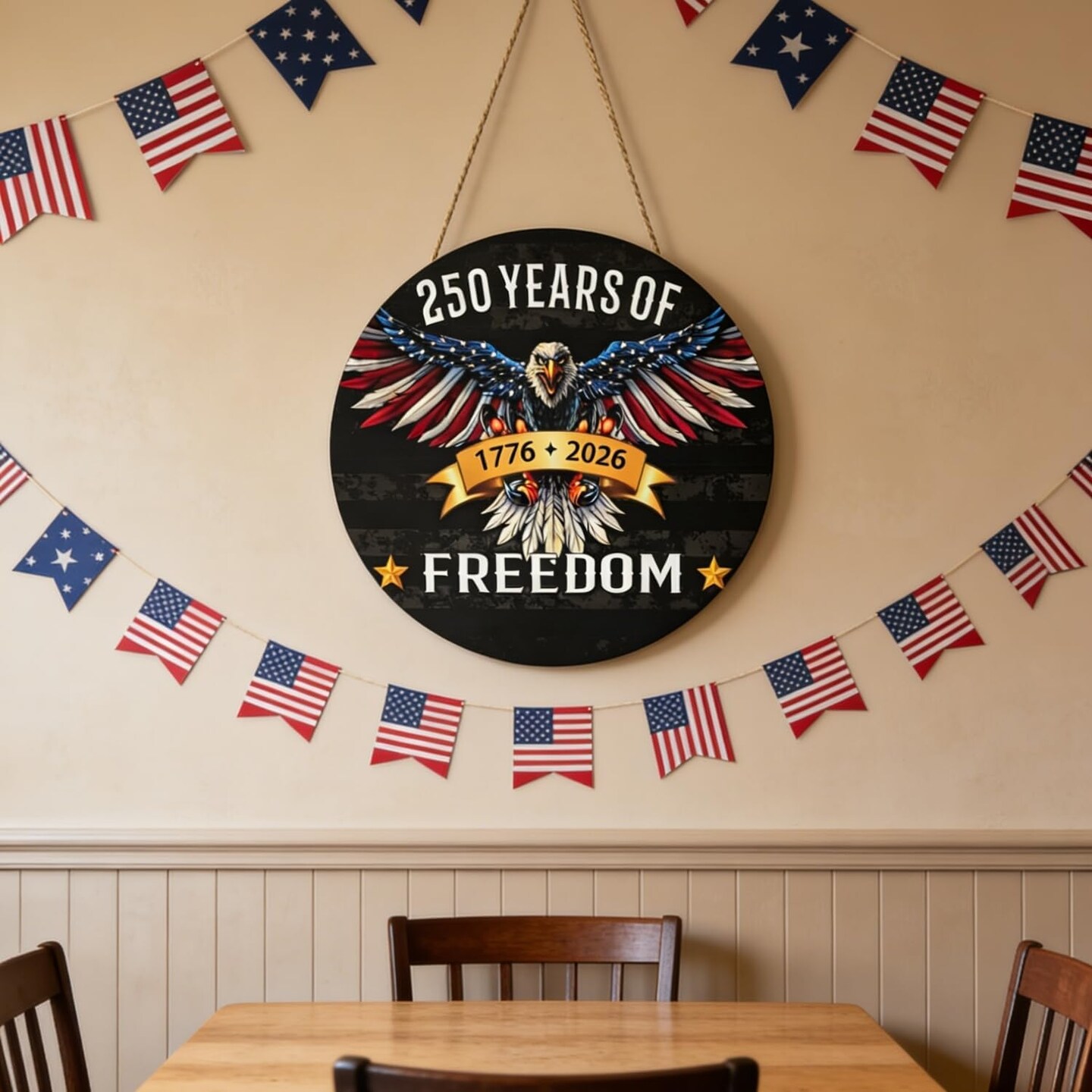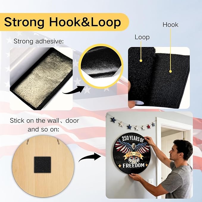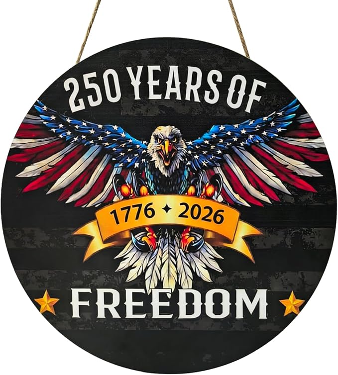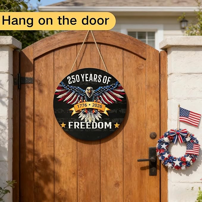 250 Anniversary 4th of July Door Decorations, Wooden American Eagle 1776‑2026 Door Hanger with 2‑in‑1 Mounting, Patriotic Front Door Wreath for Porch, Wall & Indoor Home Décor
