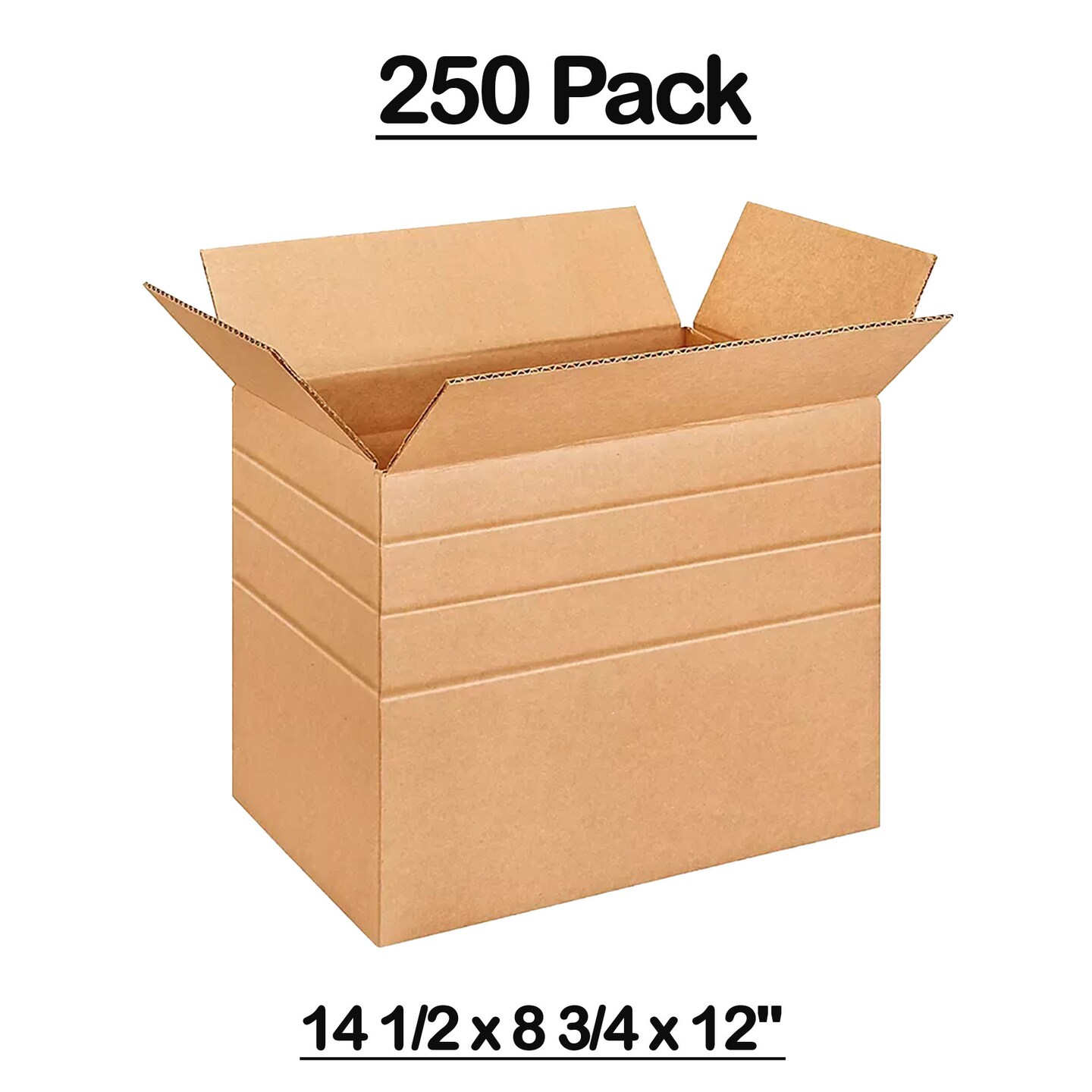 250 Pack Heavy Duty Multi Depth Corrugated Cardboard Boxes for Mailing Shipping and Storage 14 1⁄2 x 8 3⁄4 x 12 inch