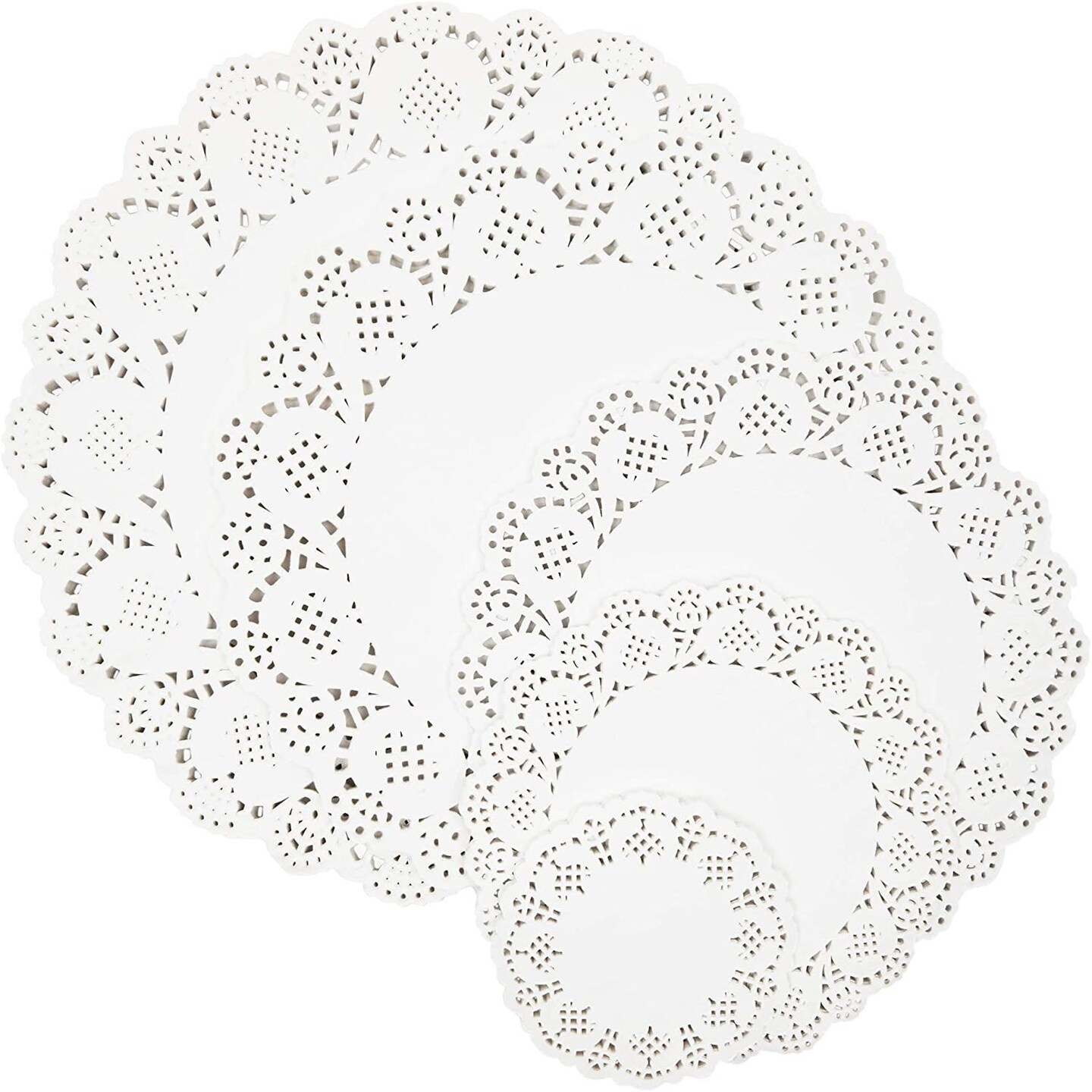 250 Pack Lace Paper Doilies for Arts and Crafts, Round White Table Placemats (5 Sizes)