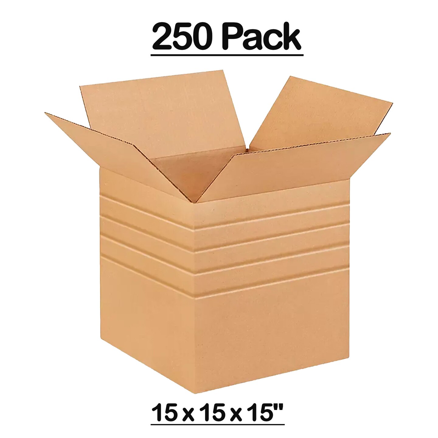 250 Pack Strong Multi Depth Corrugated Packing Boxes for Mailing Shipping and Storage 15 x 15 x 15 inch