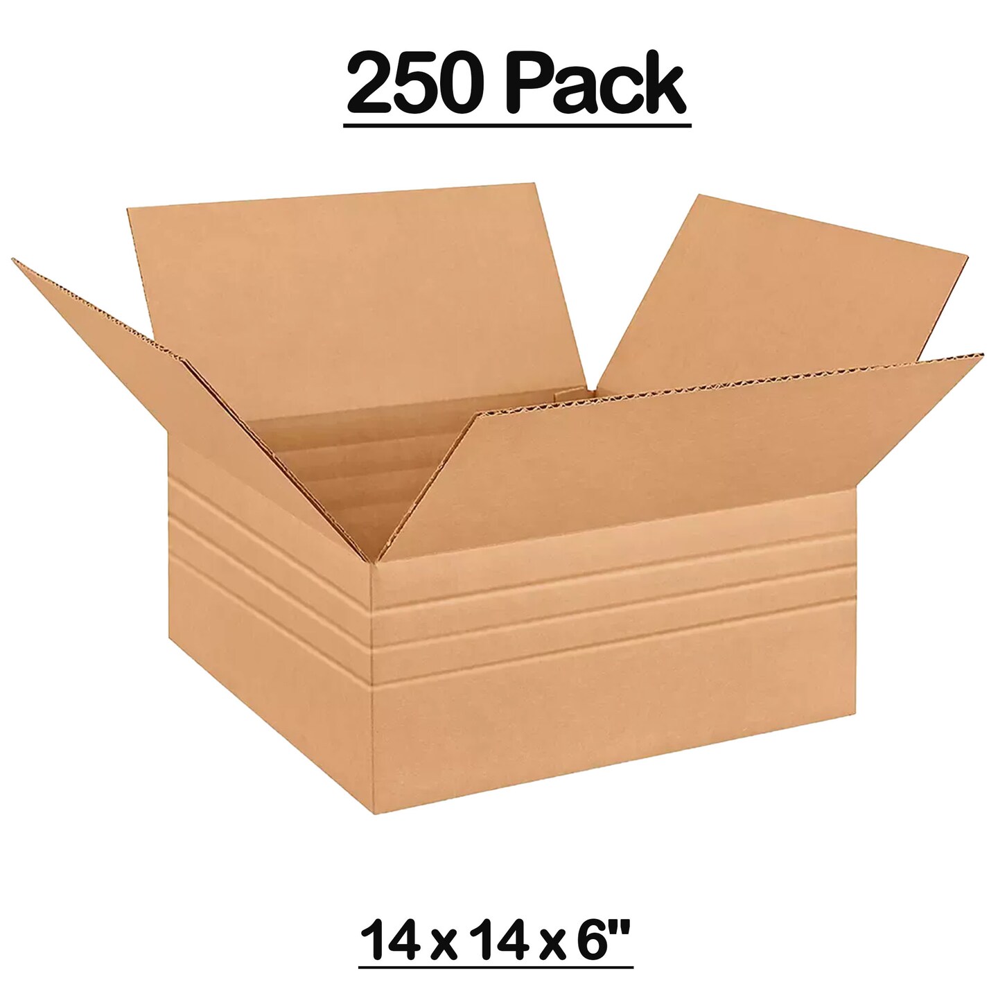 250 Pack Strong Multi Depth Corrugated Shipping Cartons for Mailing Packaging and Storage 14 x 14 x 6 inch