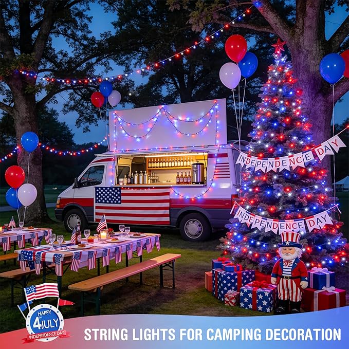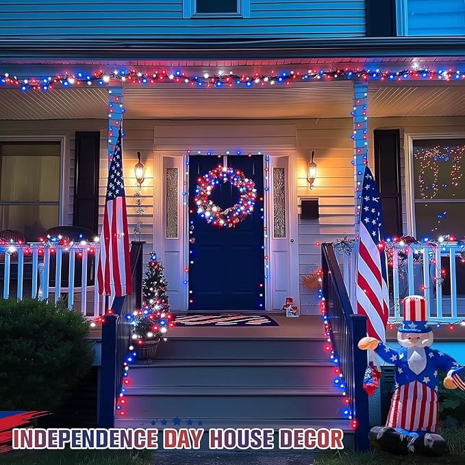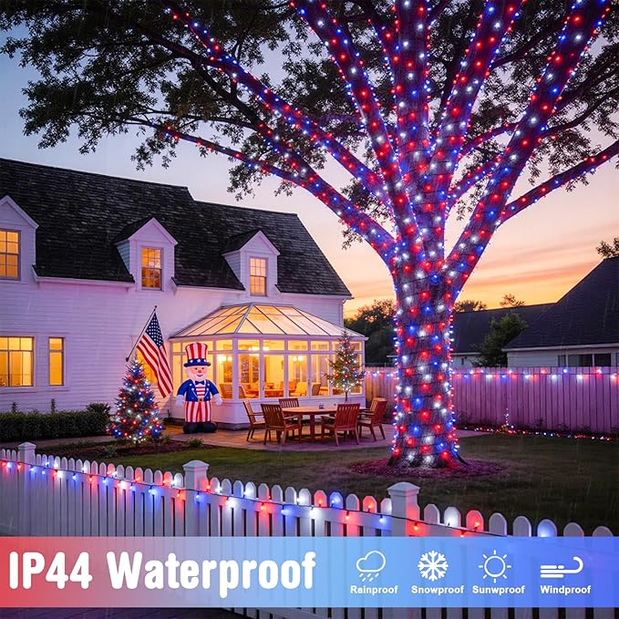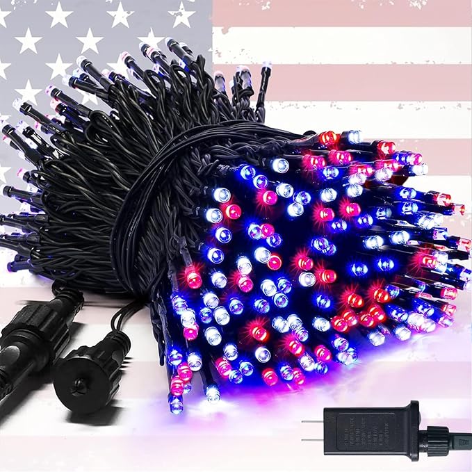 250-LED Red, White, and Blue String Lights - 91.5ft Waterproof Patriotic Fairy Lights - 8 Lighting Modes & Connectable Outdoor Decor for 4th of July and 2026 Sestercentennial Celebrations