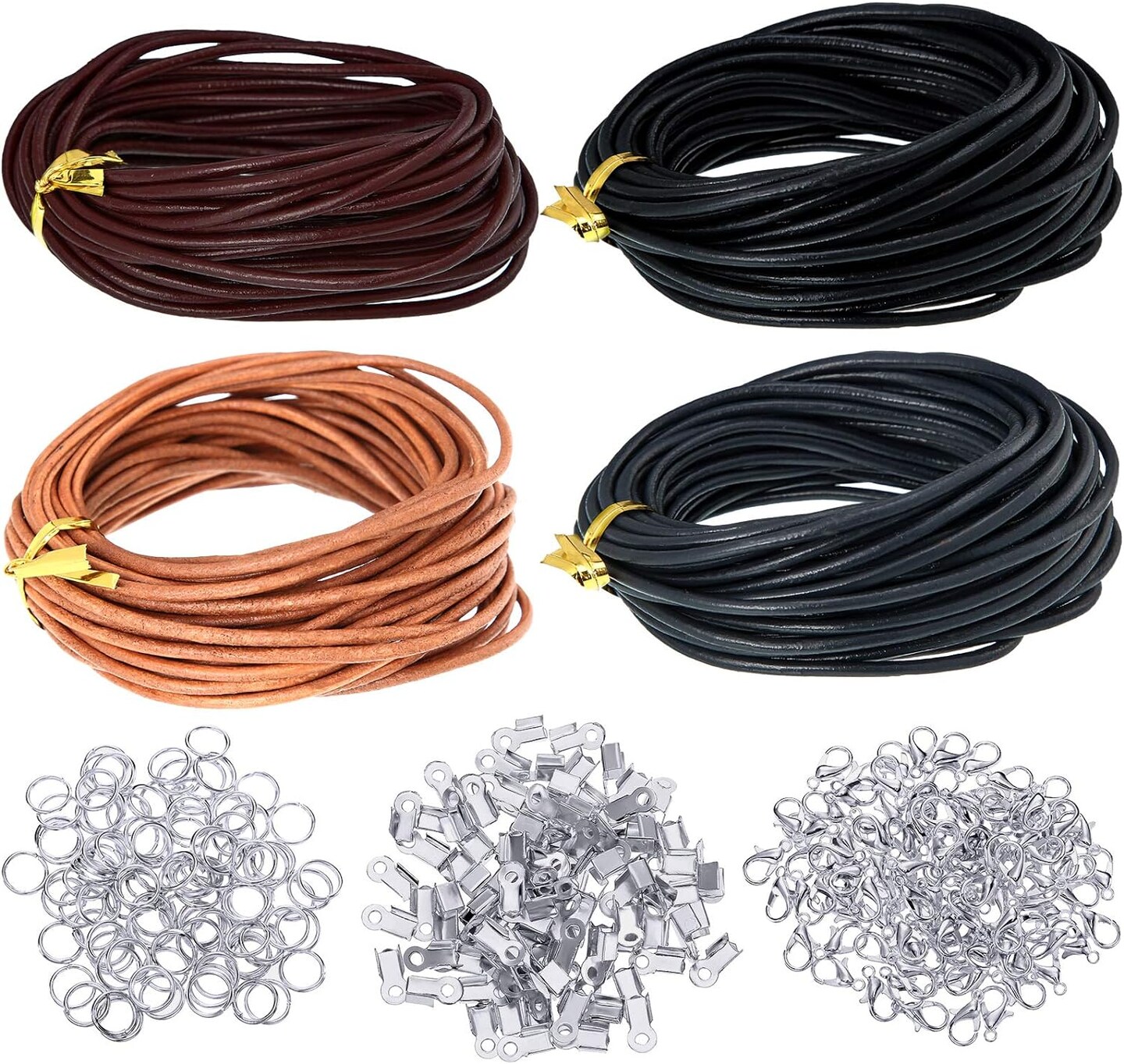 254 Pcs Round Leather Cord for Jewelry Making Kit (Eye-catching Colors)