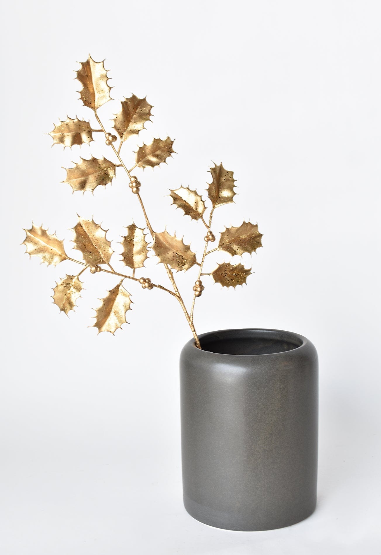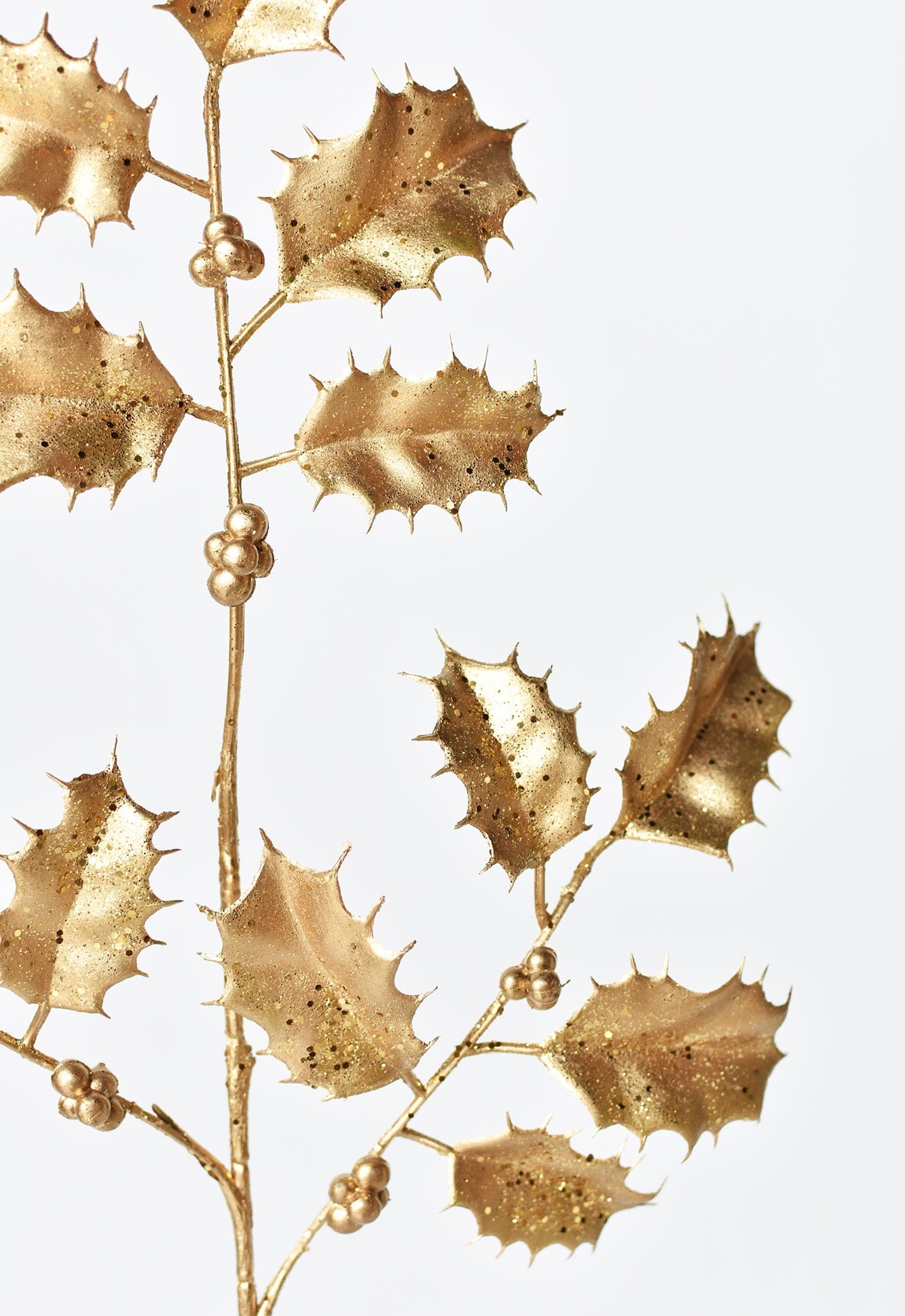 25.5" Faux Metallic Gold Holly Leaf Stem