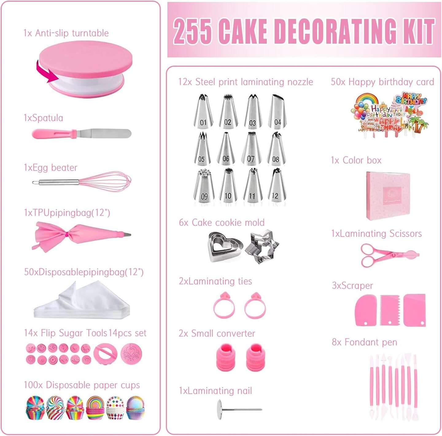 255-Piece Cake Decorating Kit – Turntable, Icing Tips, Cookie Cutters, Smoothers & Accessories
