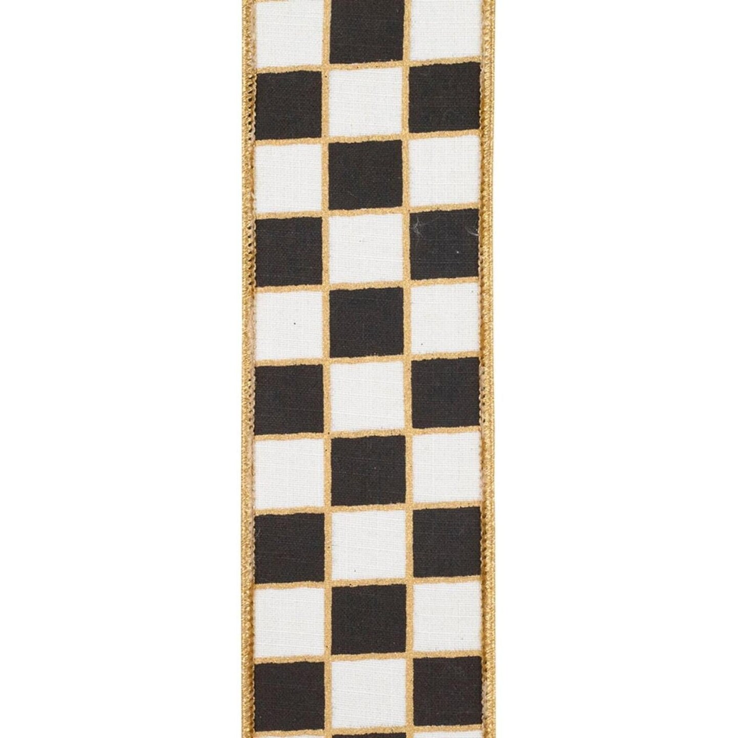 2.5in Checked Metallic Ribbon: Black/White (5 Yards)