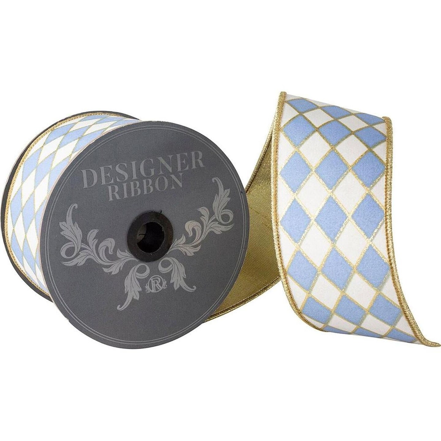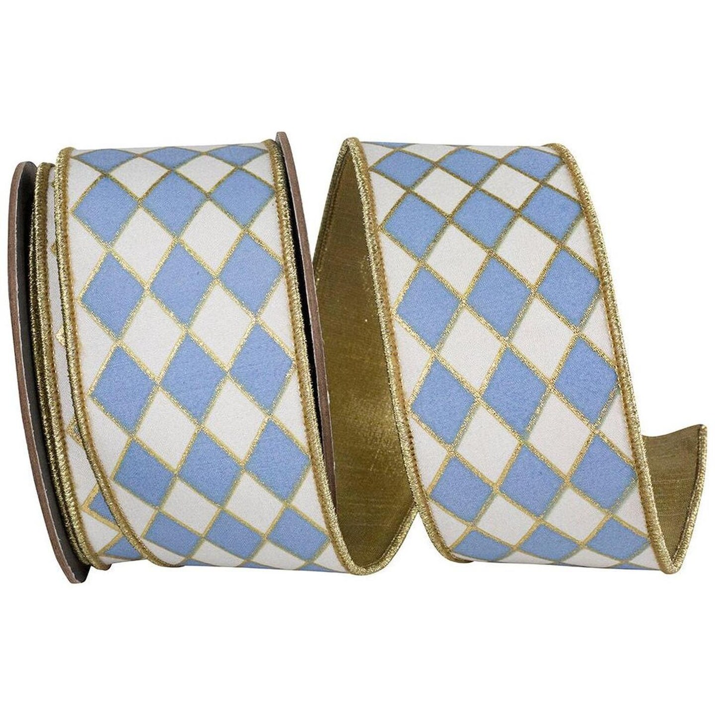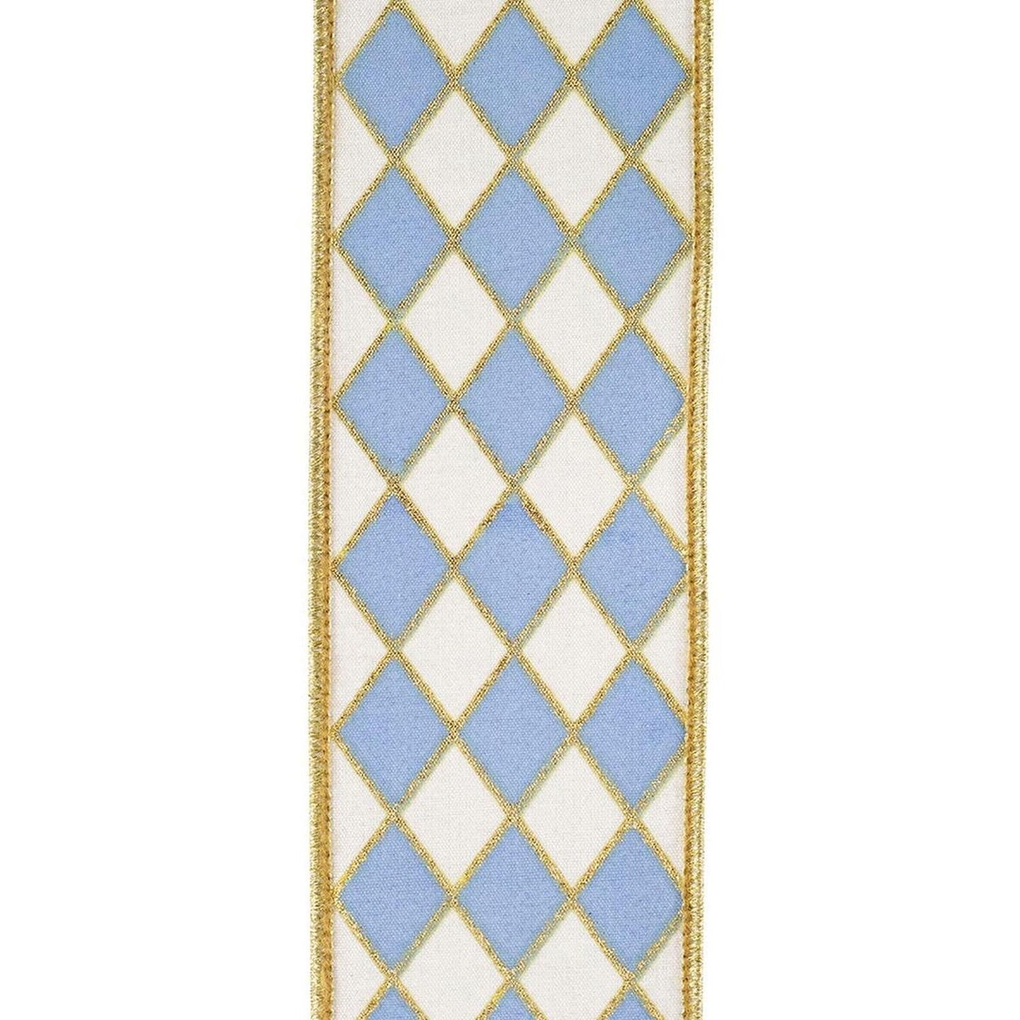 2.5in French Blue Gold Trim Harlequin Ribbon (10 Yards)
