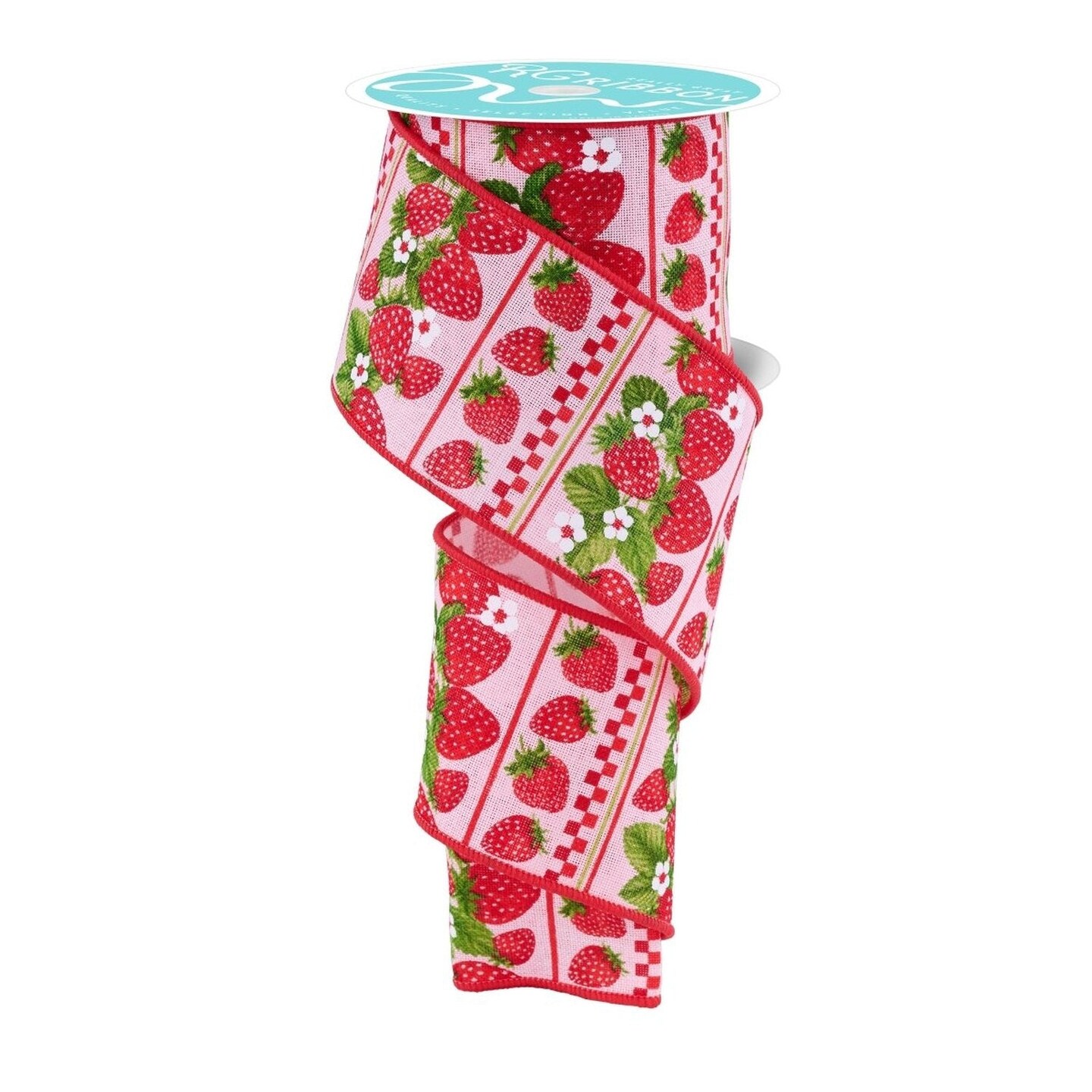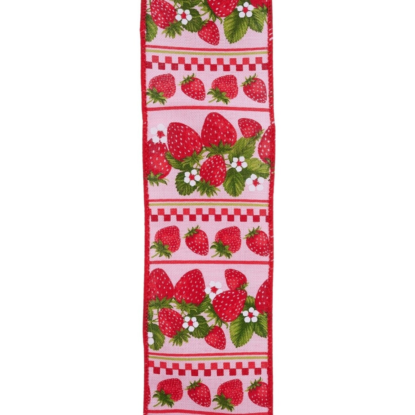 2.5in Strawberries Ribbon: Pink (10 Yards)