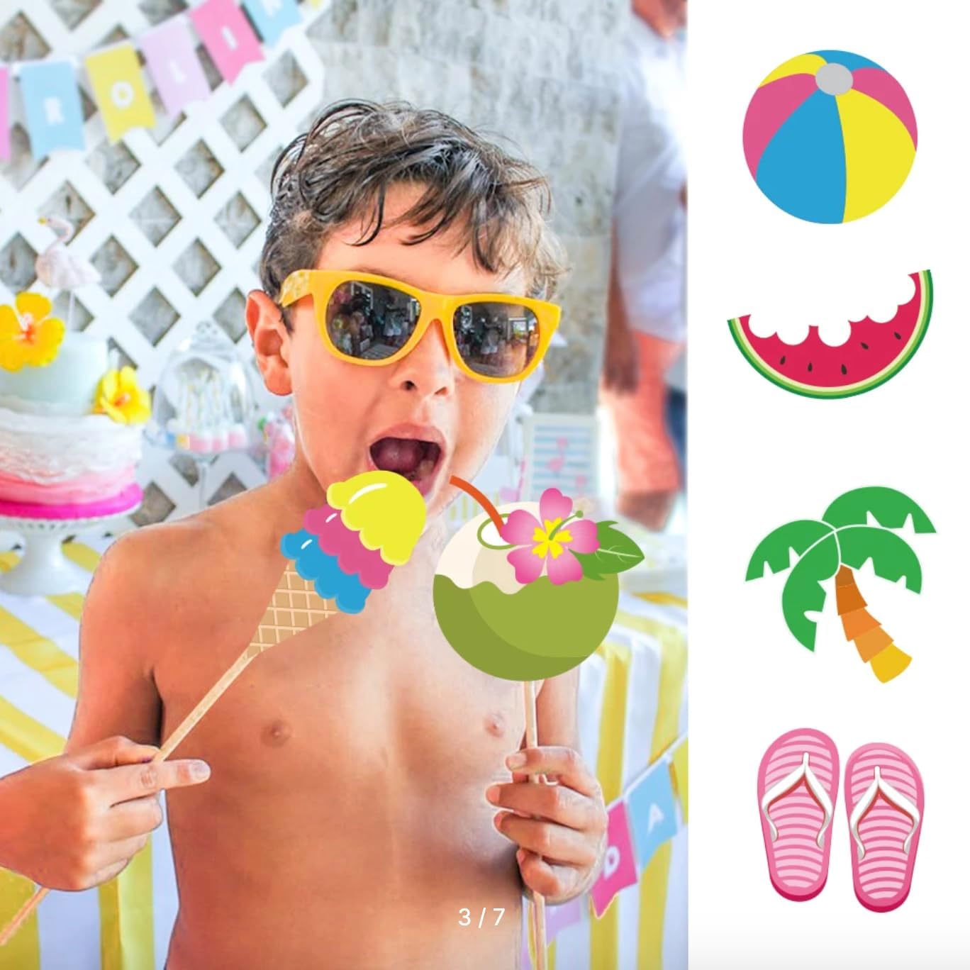 25Pcs Hello Summer Pool Photo Booth Props with Stick