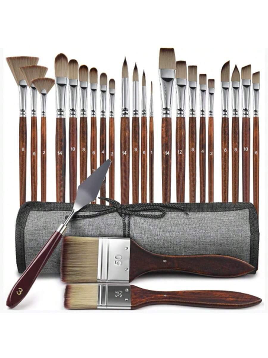 25pcs Paint Brush Set, Acrylic Paint Brushes Professional Artist Series