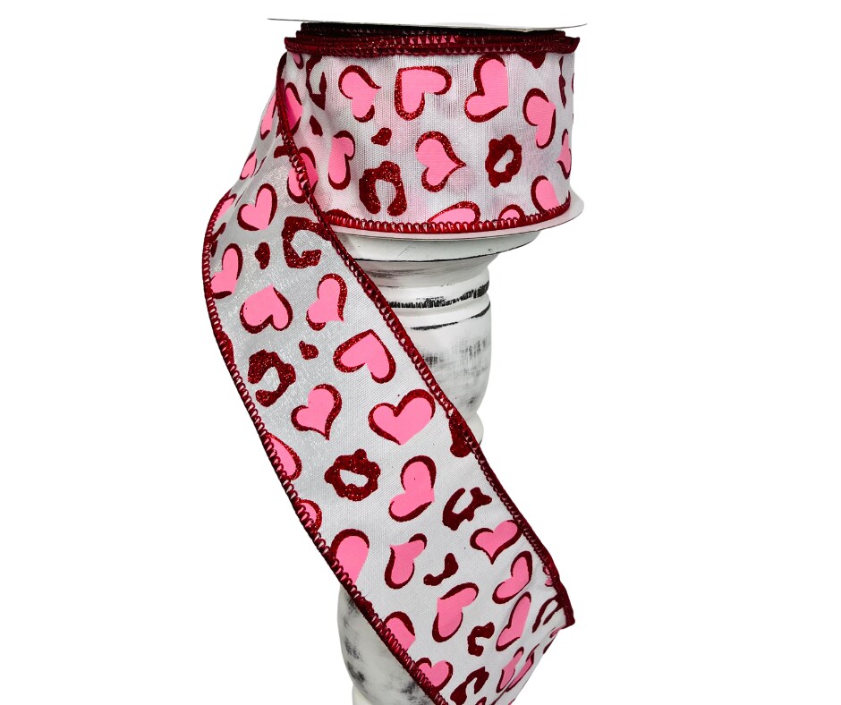 2.5"x10YD Heart Leopard Spots Valentine's Day Wired Ribbon - Pink/Red/White - Playful Romance for Crafts and Decor-(RGC189724)