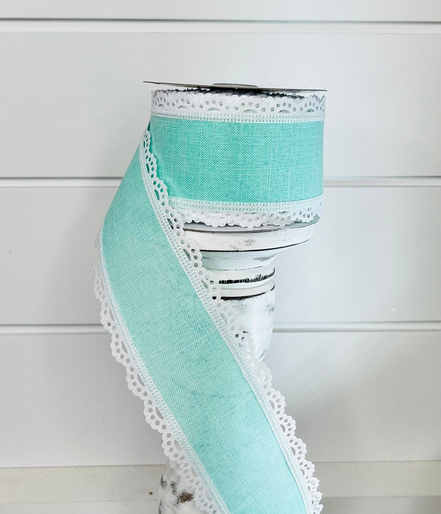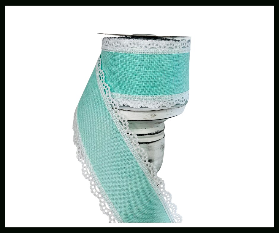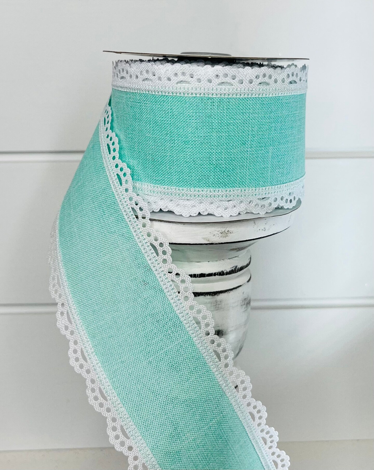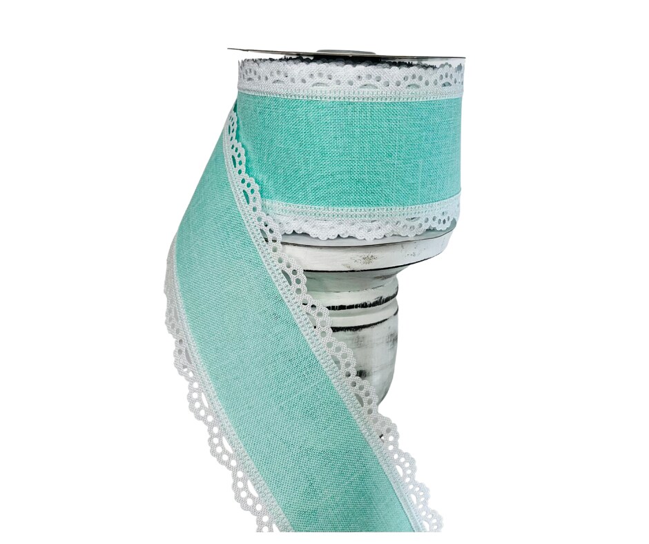 2.5"x10YD Mint Green/White Scalloped Edge Royal Burlap Wired Ribbon - Rustic Charm with a Touch of Elegance-RGA1542AN