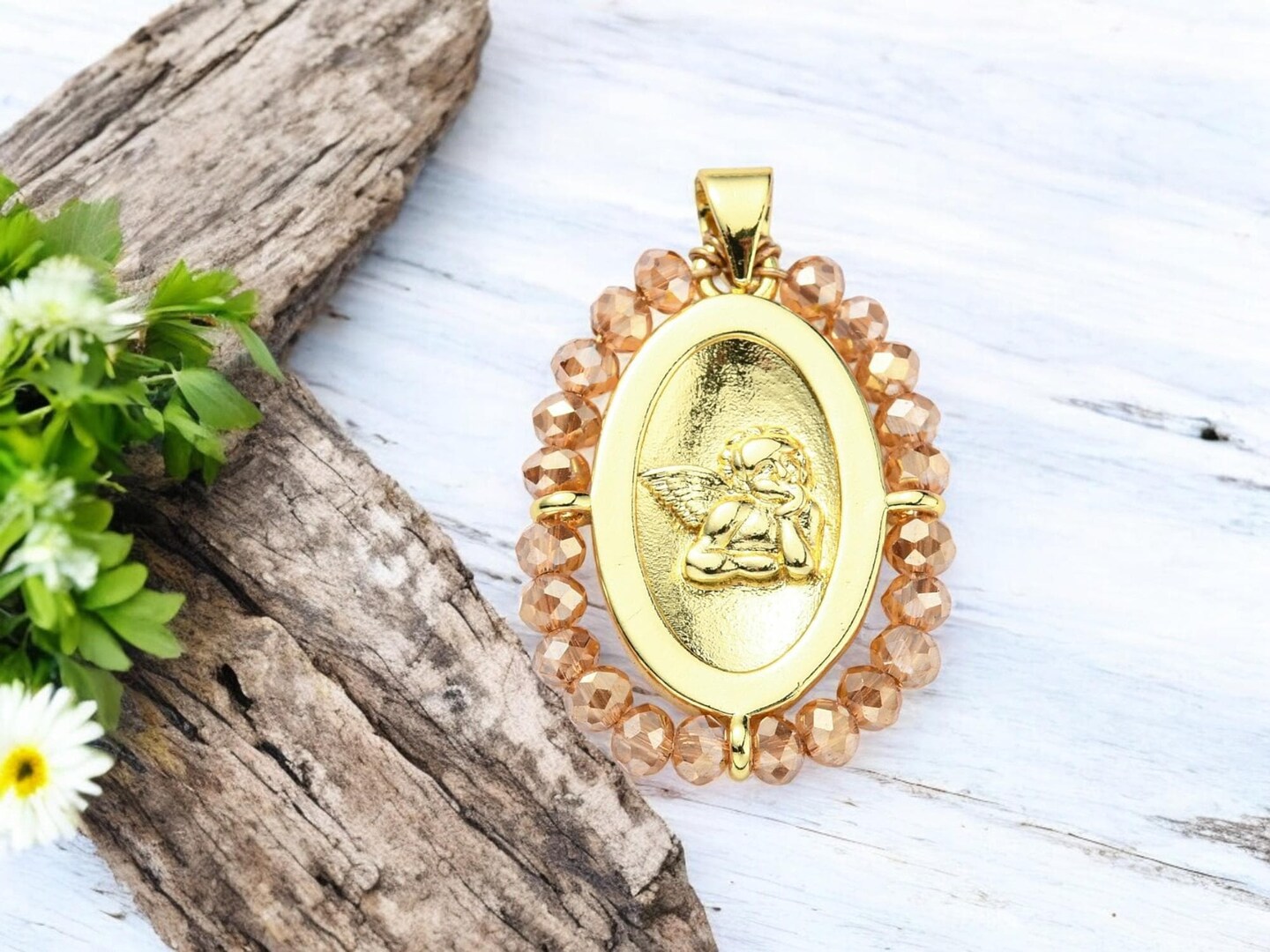 25x20mm Beaded Oval Angel Charm Pendant